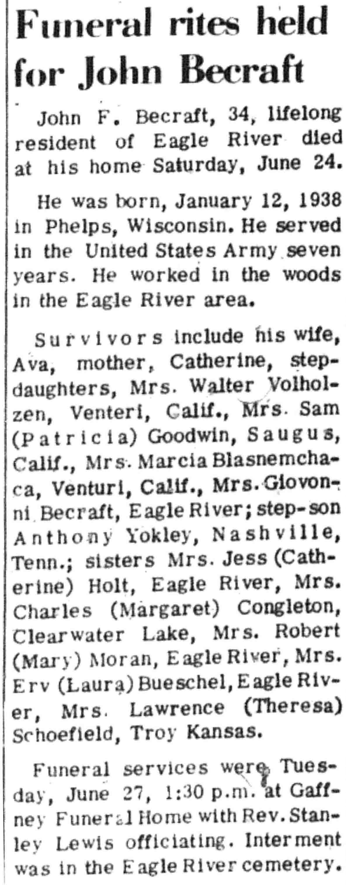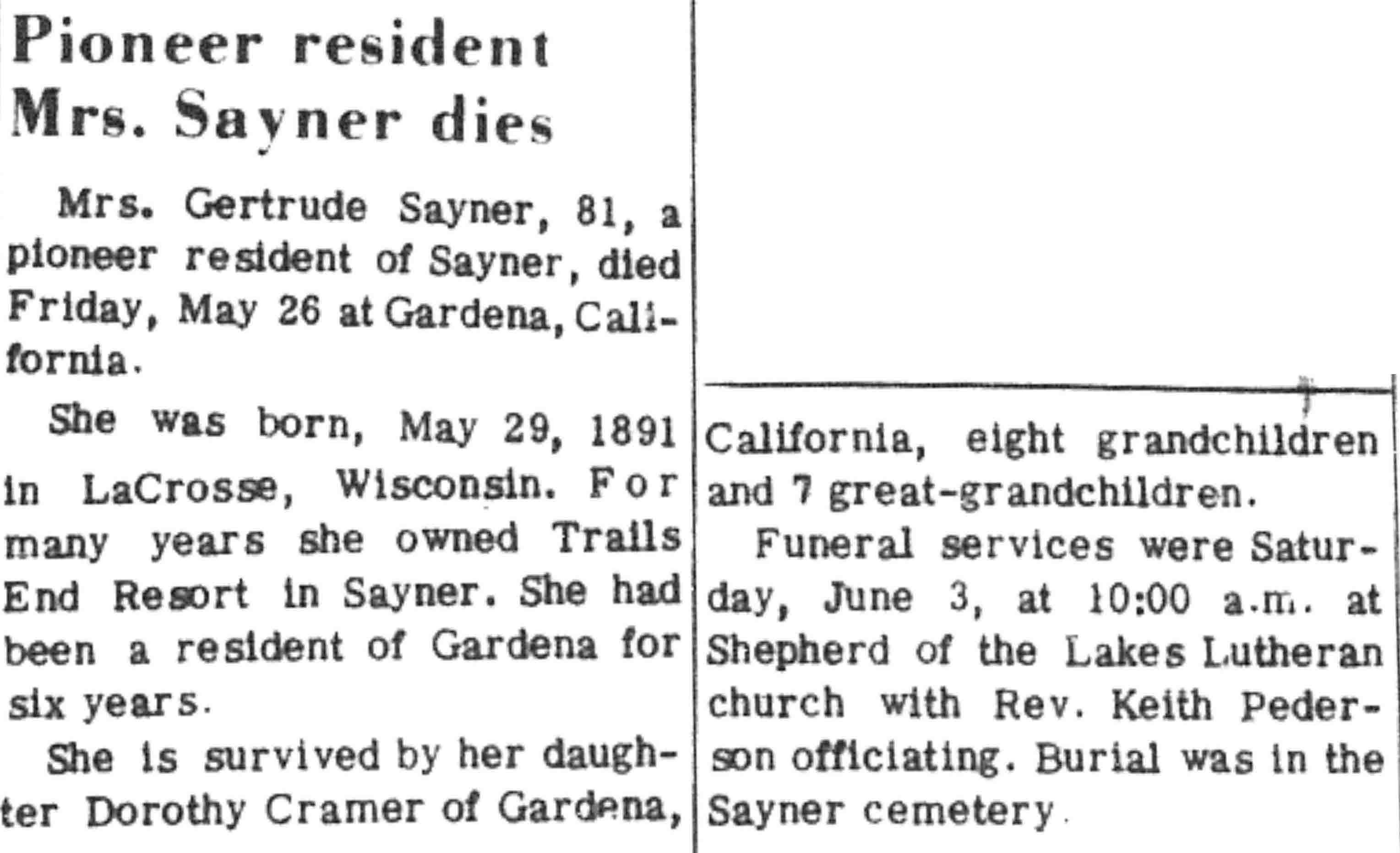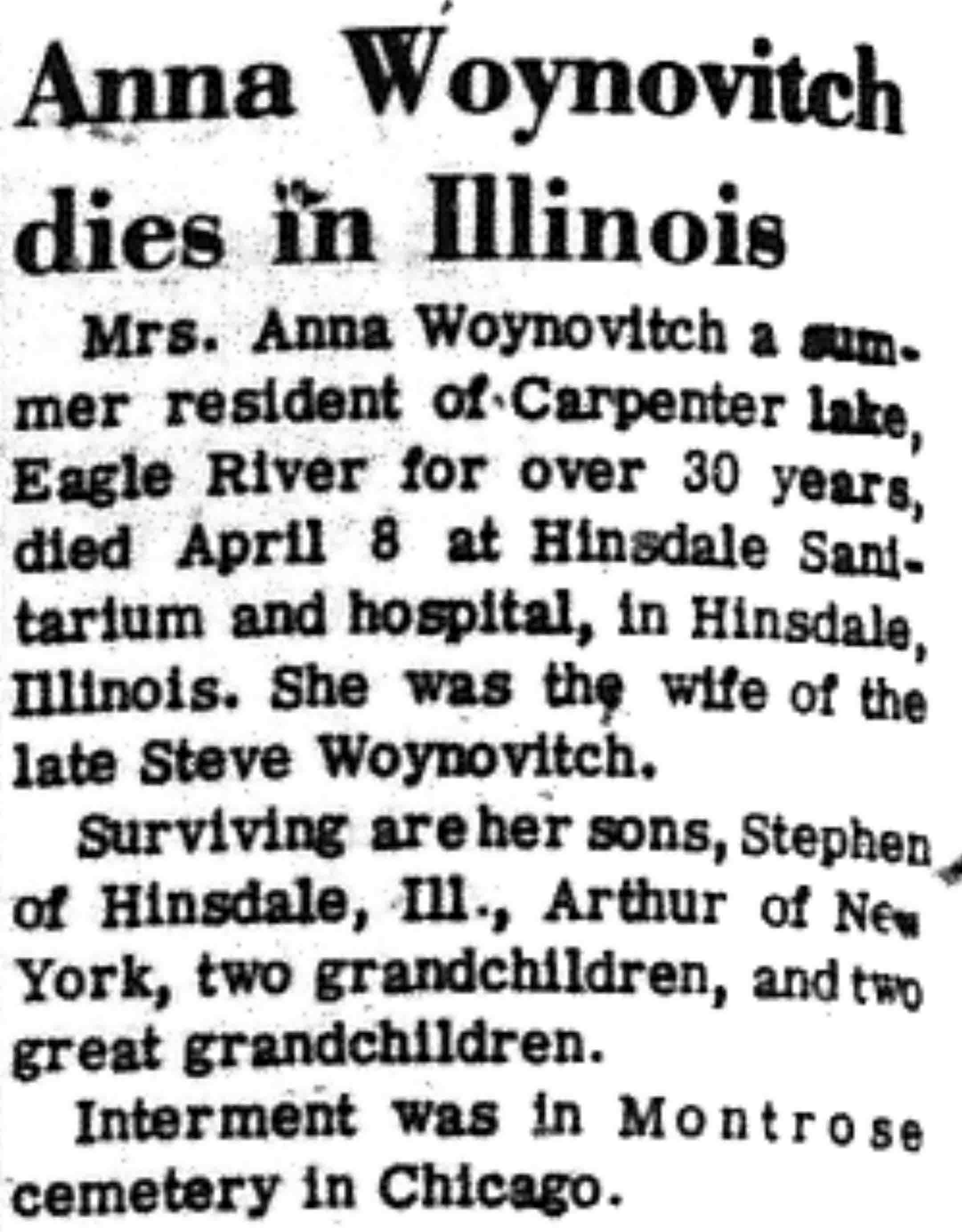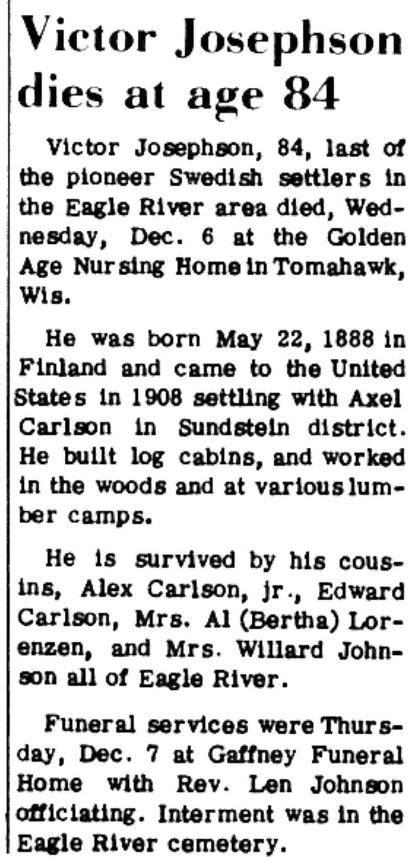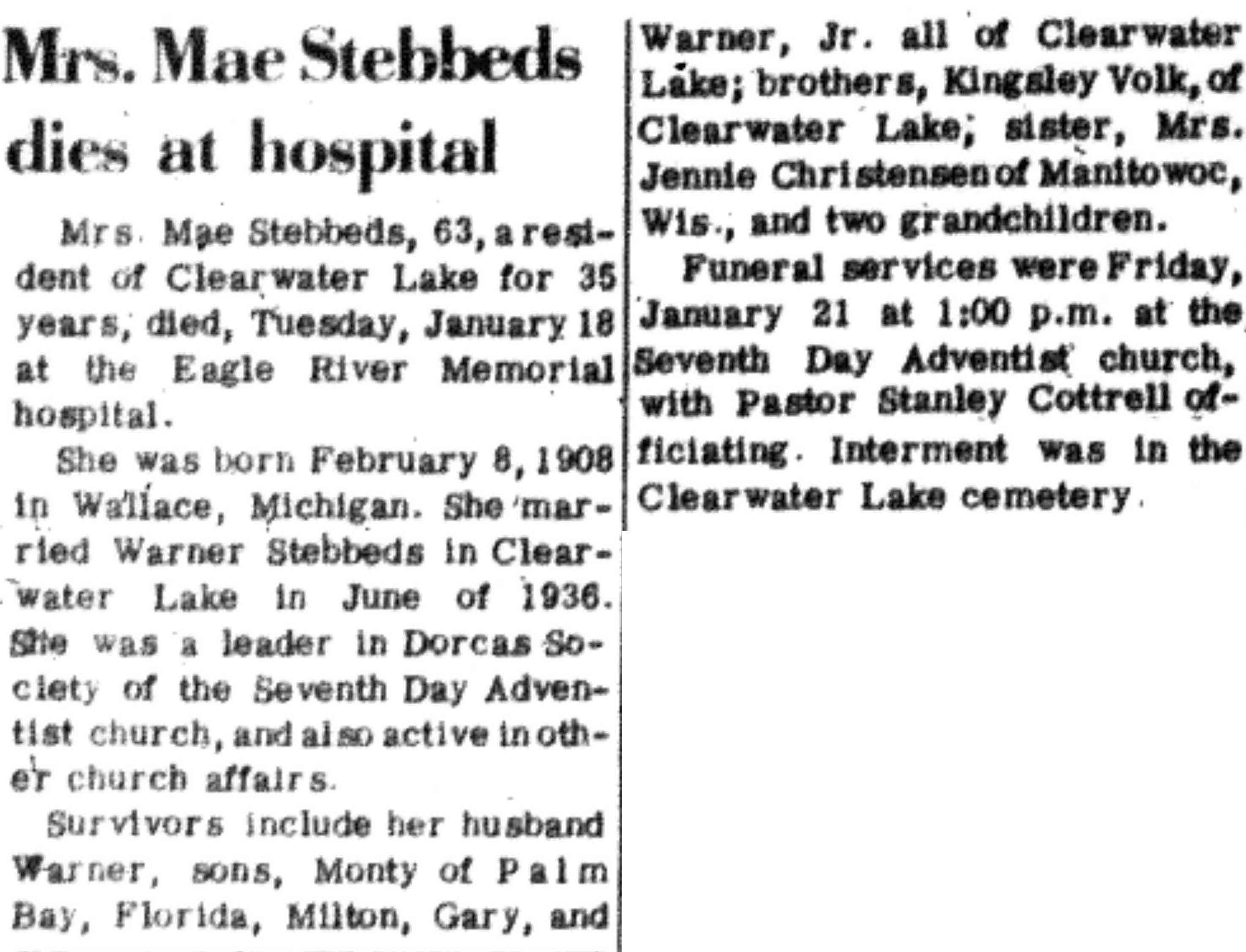 | Webb | Annette (Koski) | c 1912 | 29 May 1972 | VCN | 08 Jun 1972 | 3 |