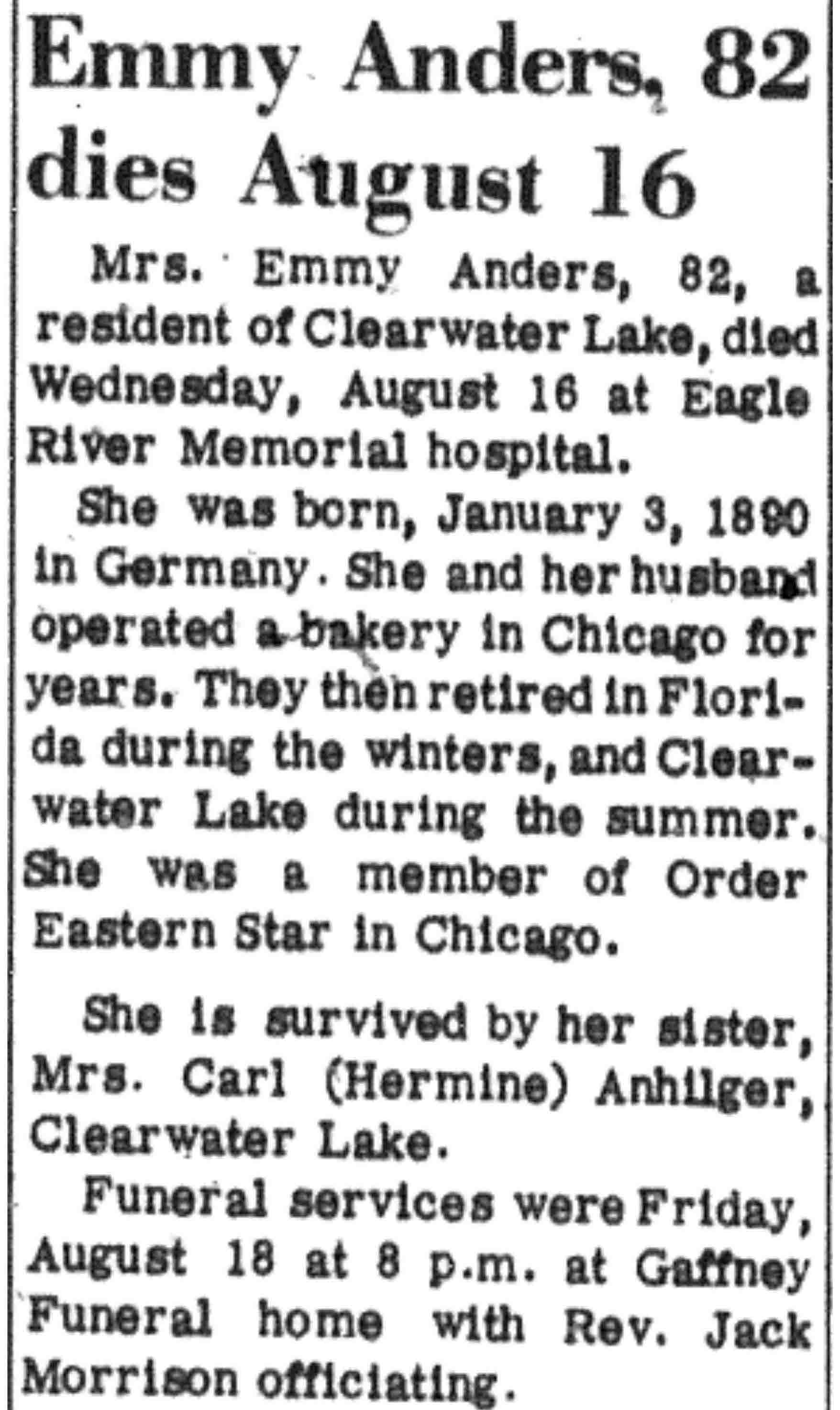 | Anders | Emmy | 03 Jan 1890 | 16 Aug 1972 | VCN | 24 Aug 1972 | 3 |