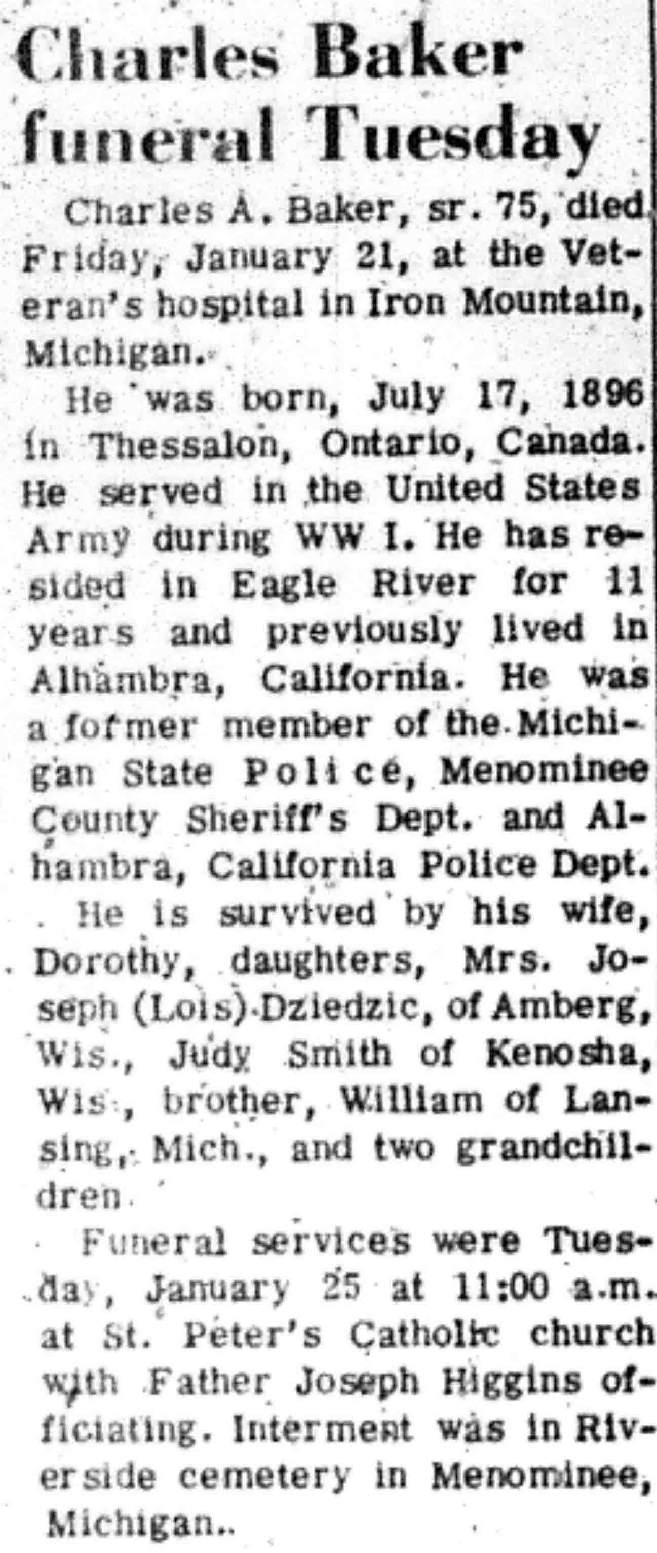 | Baker | Charles A | 17 Jul 1896 | 21 Jan 1972 | VCN | 27 Jan 1972 | 6 |