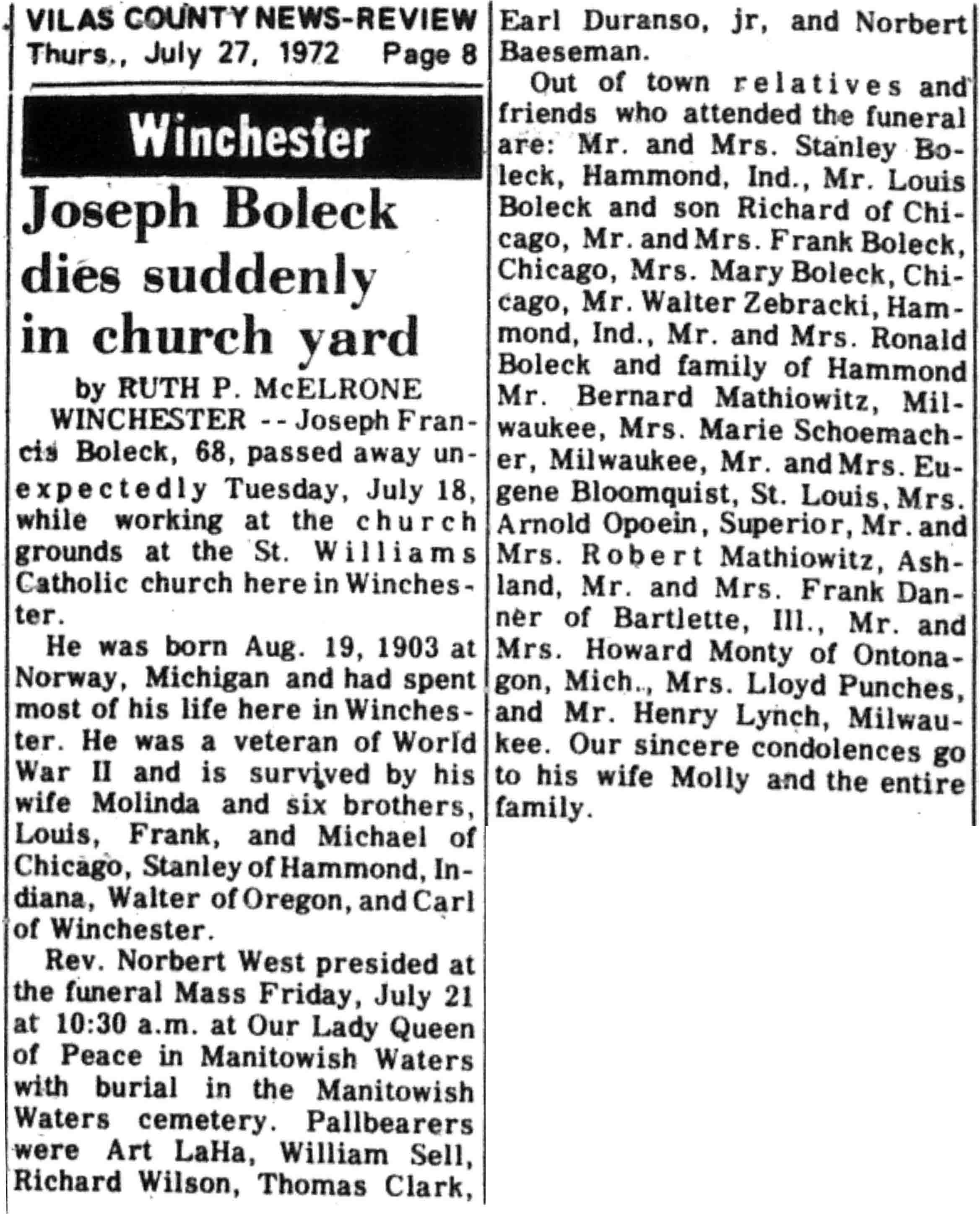 | Boleck | Joseph Francis | 19 Aug 1903 | 18 Jul 1972 | VCN | 27 Jul 1972 | 8 |