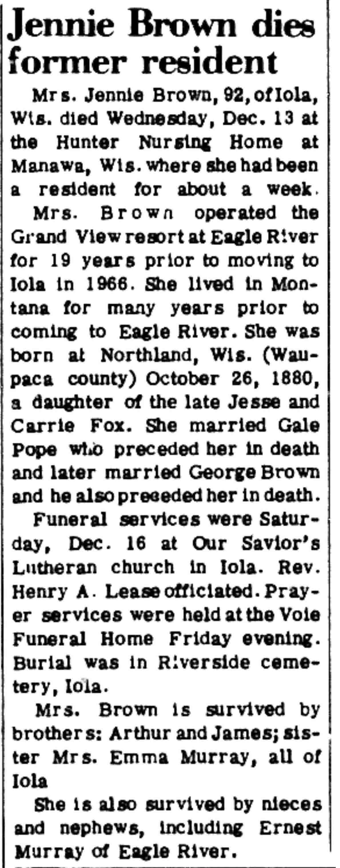 | Brown | Jennie (Fox) | 26 Oct 1880 | 13 Dec 1972 | VCN | 21 Dec 1972 | 3 |