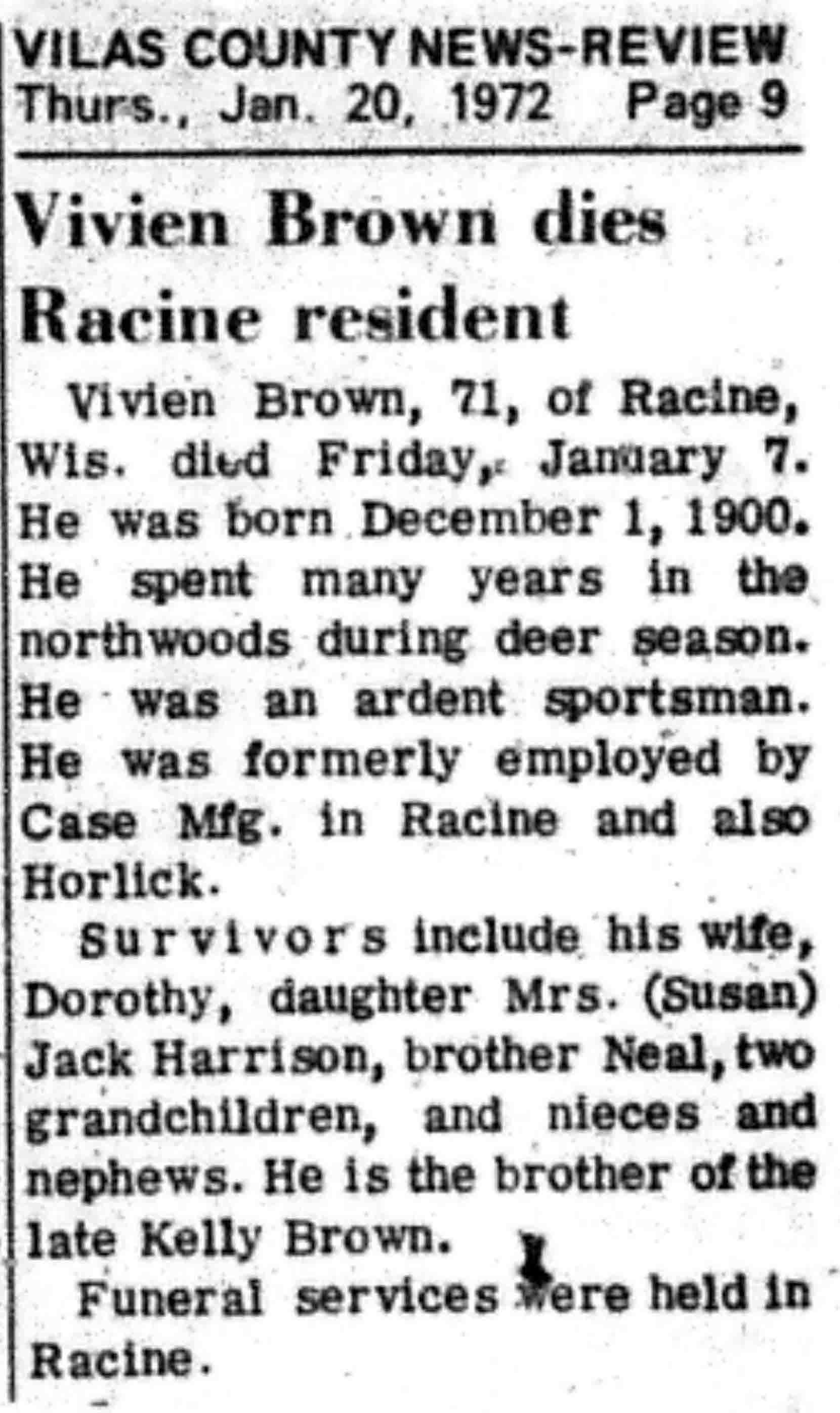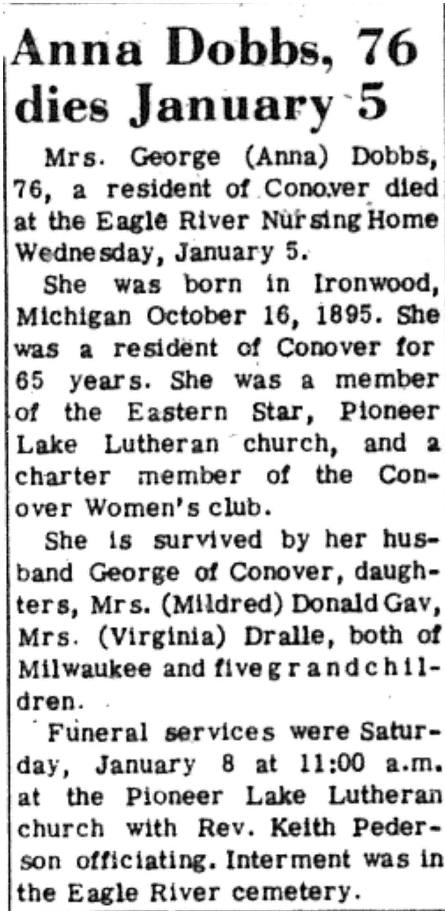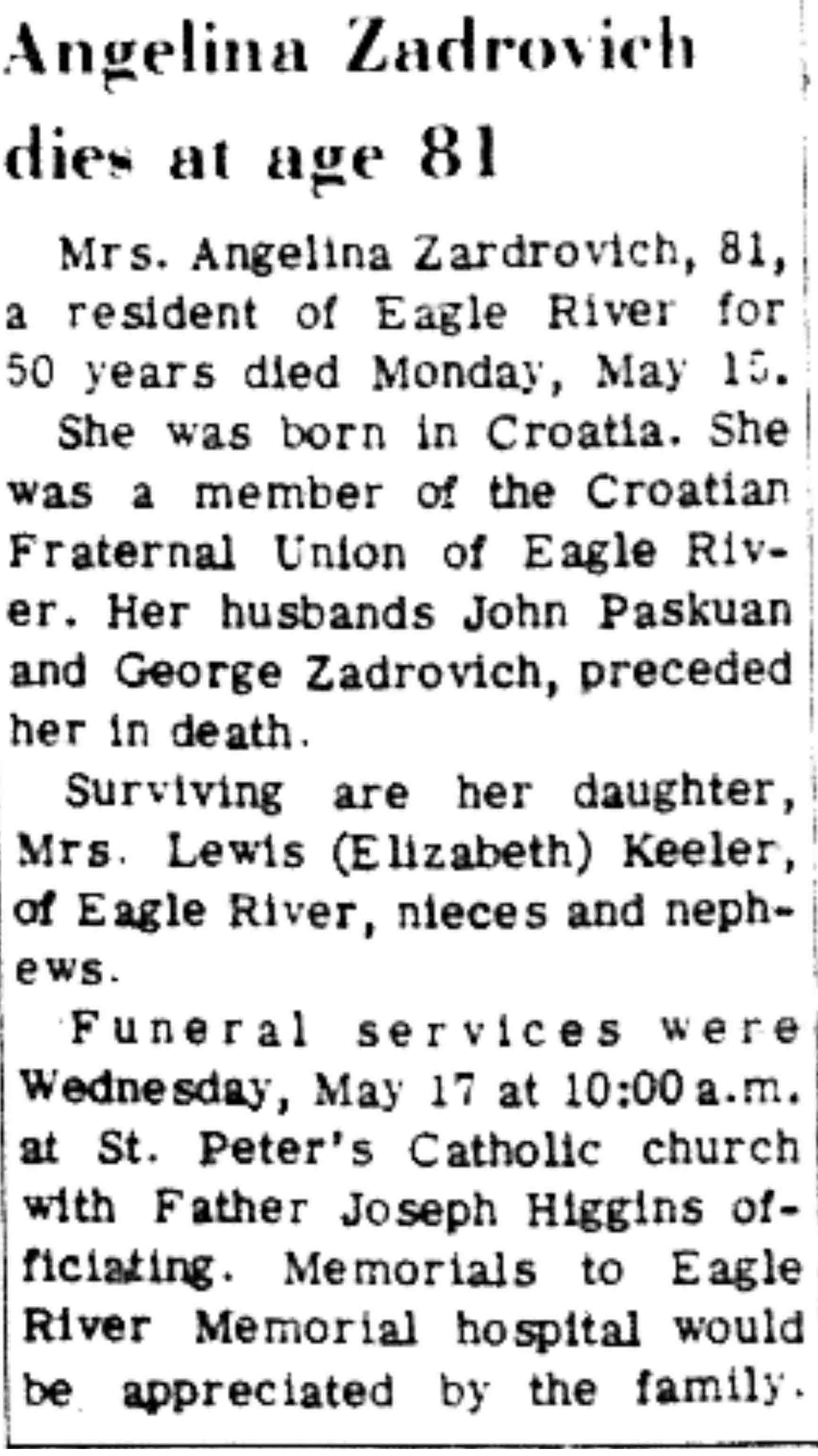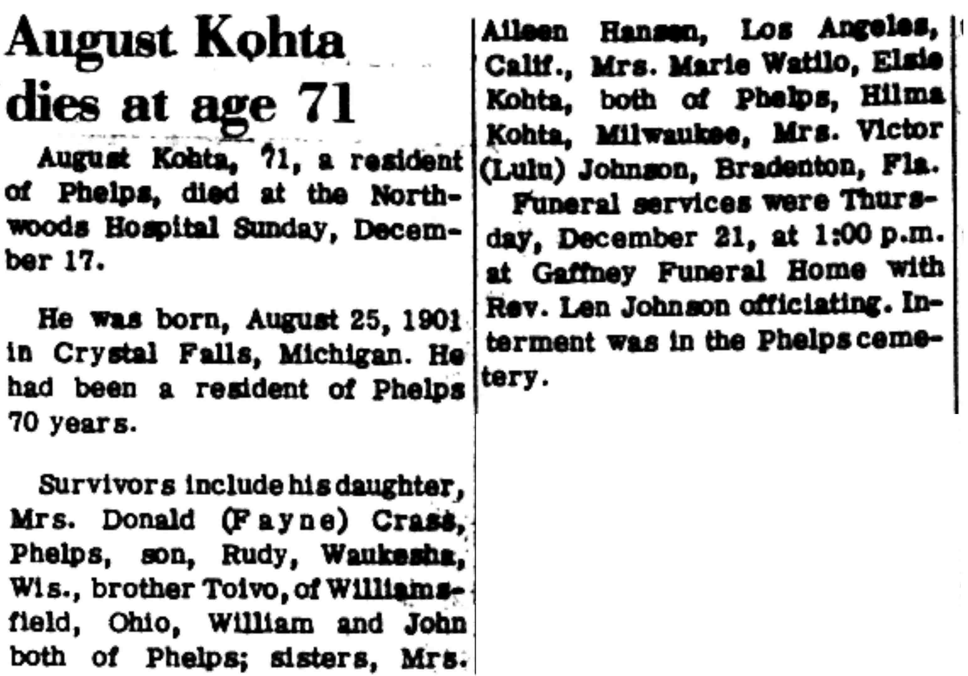| Keskinen | Iola M (Briggs) | 26 Mar 1908 | 10 Jun 1972 | VCN | 15 Jun 1972 | 2 |