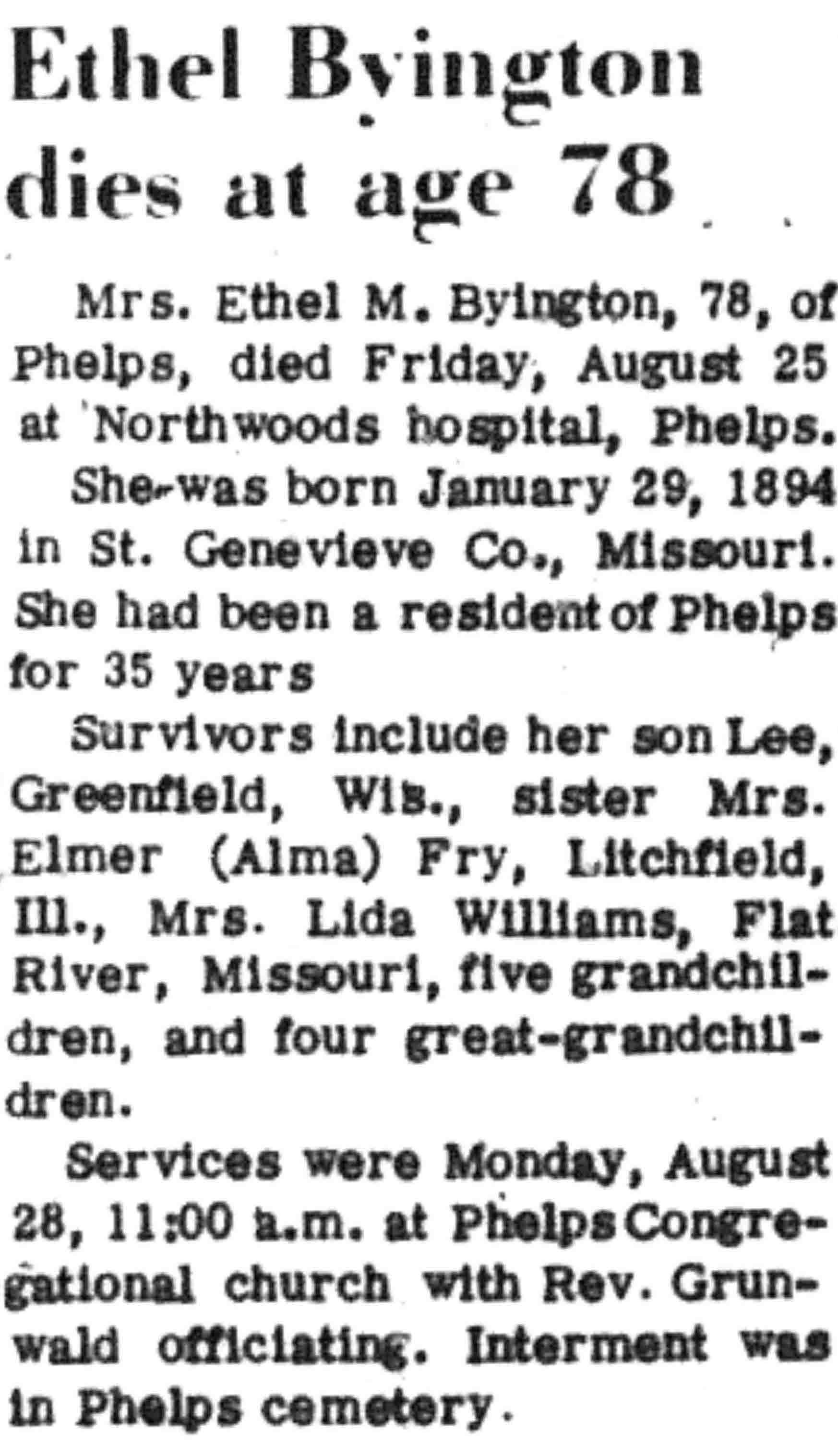 | Byington | Ethel M | 29 Jan 1894 | 25 Aug 1972 | VCN | 31 Aug 1972 | 2 |