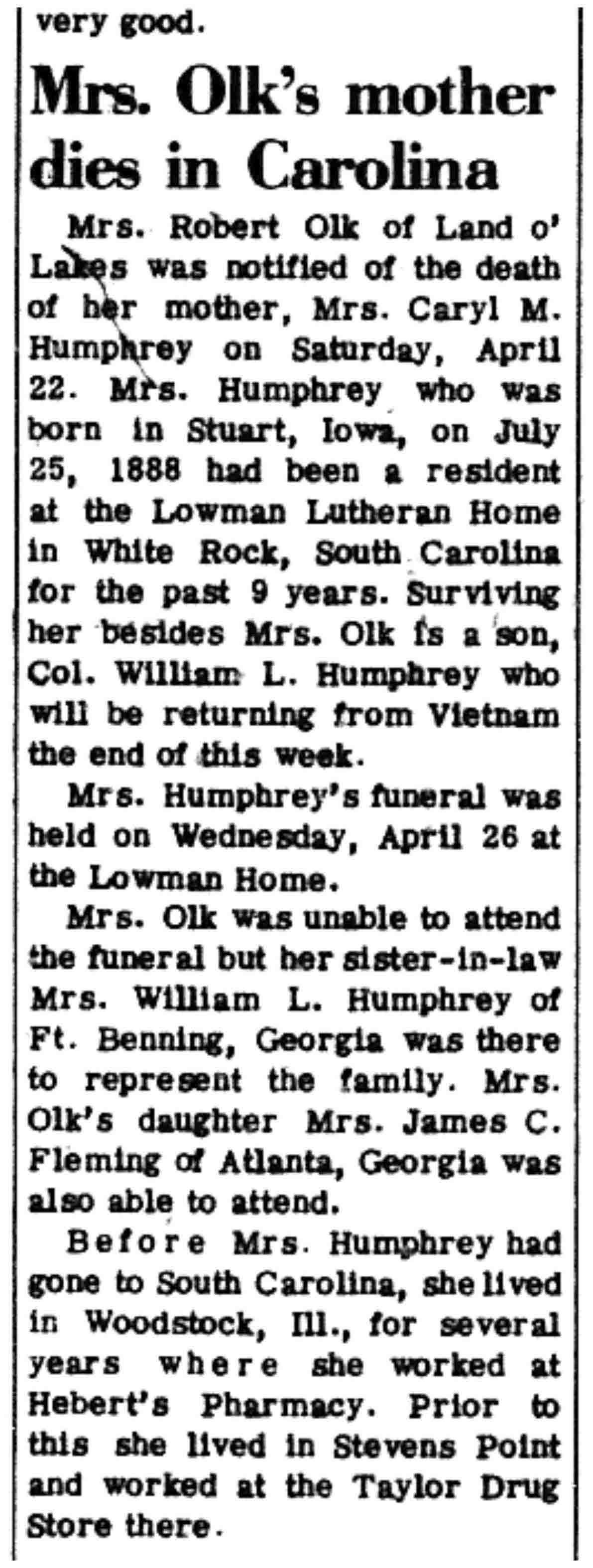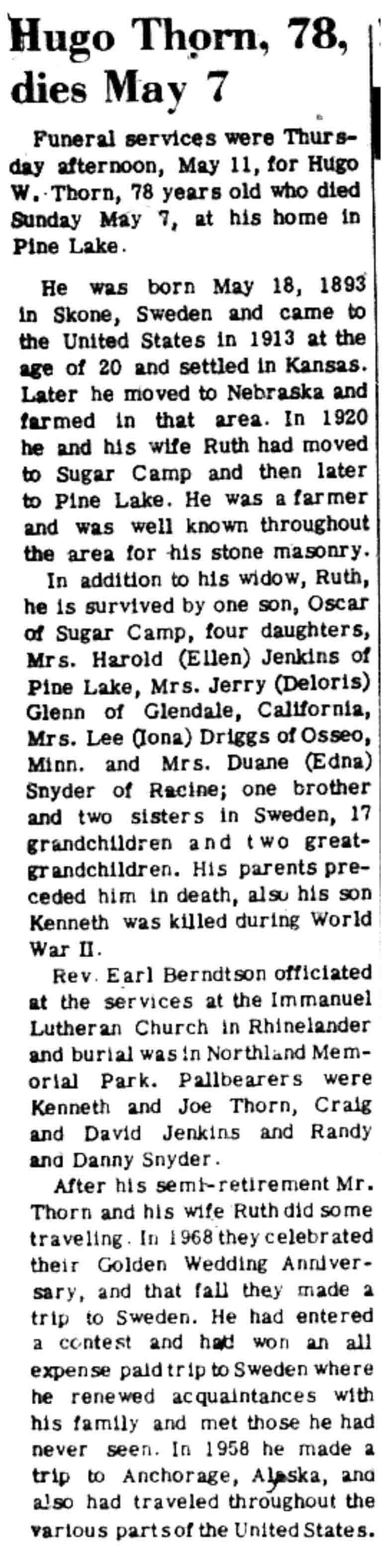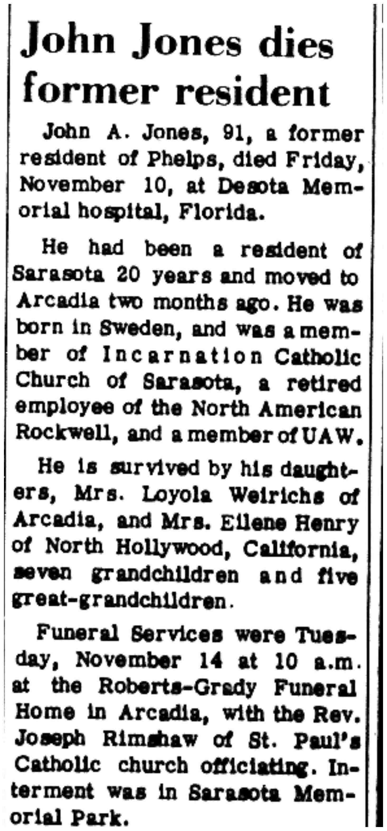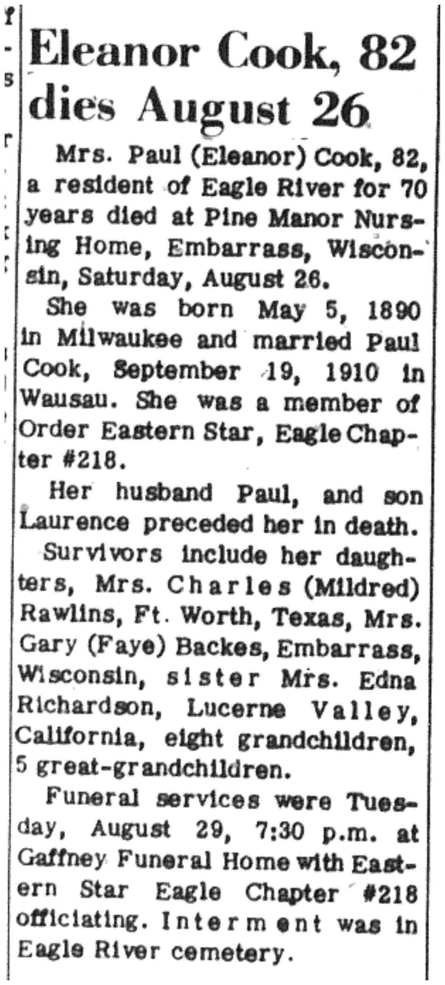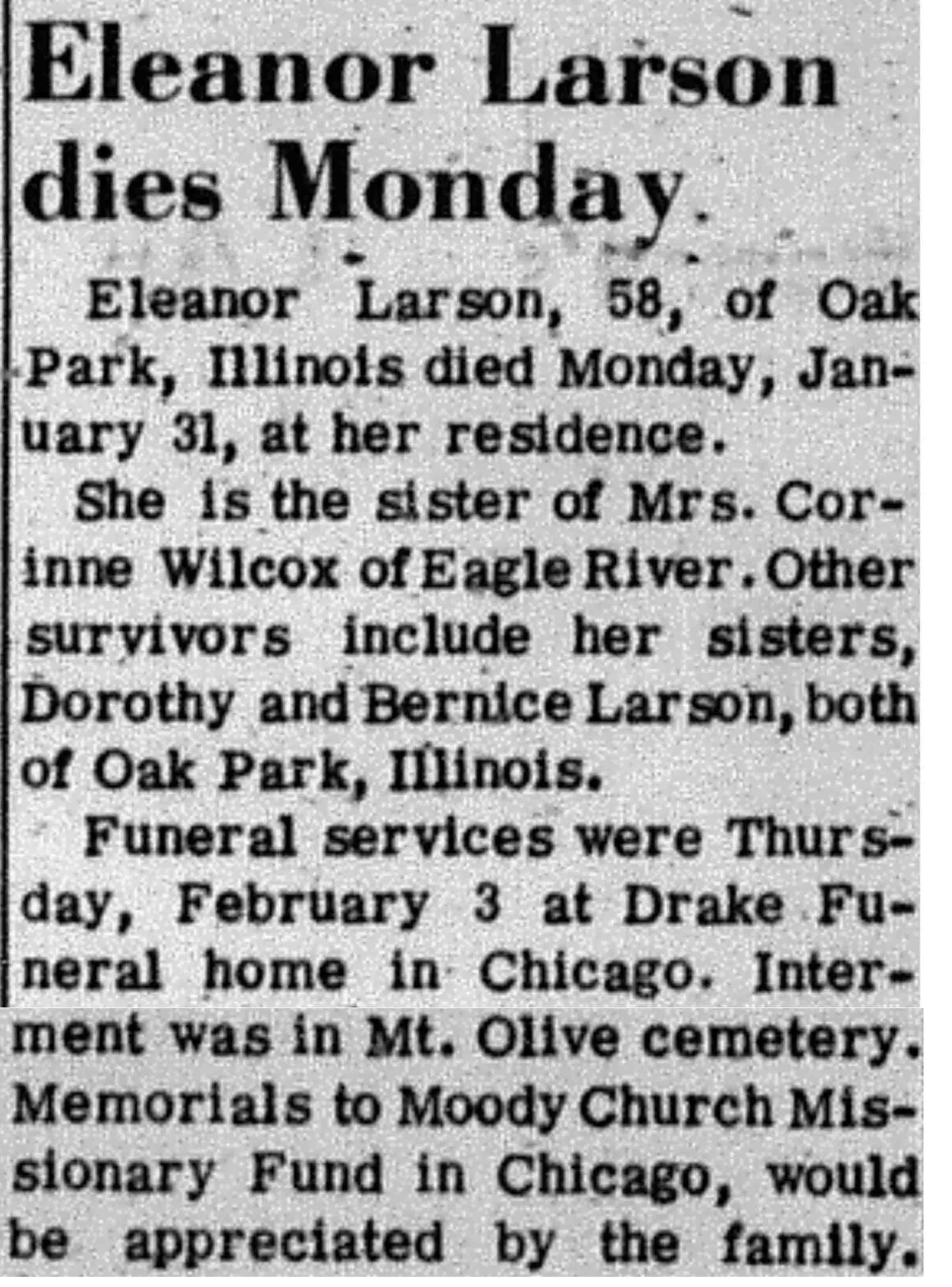 | Larson | Eleanor | c 1913 | 31 Jan 1972 | VCN | 03 Feb 1972 | 2 |