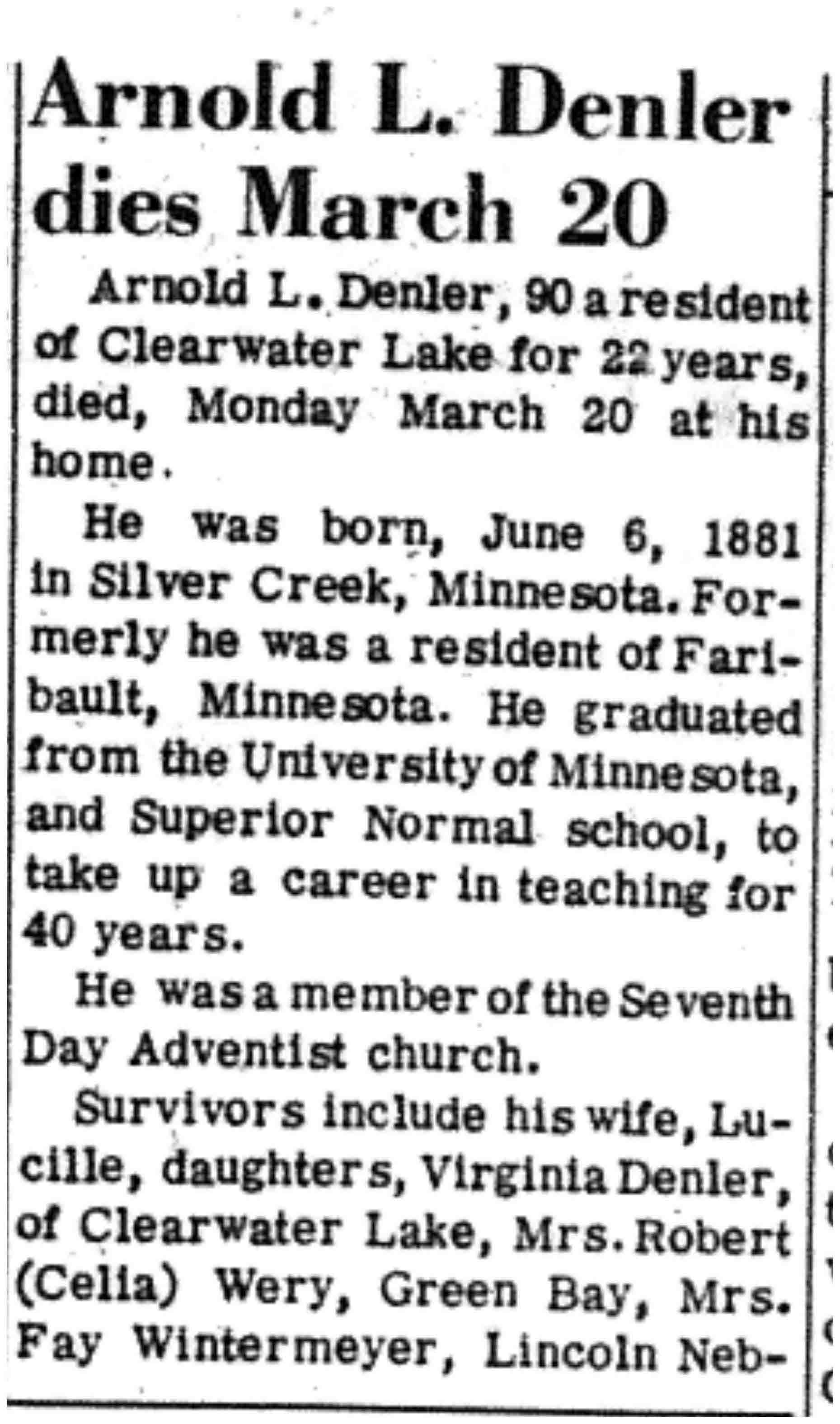 | Denler | Arnold L | 06 Jun 1881 | 20 Mar 1972 | VCN | 30 Mar 1972 | 7 |