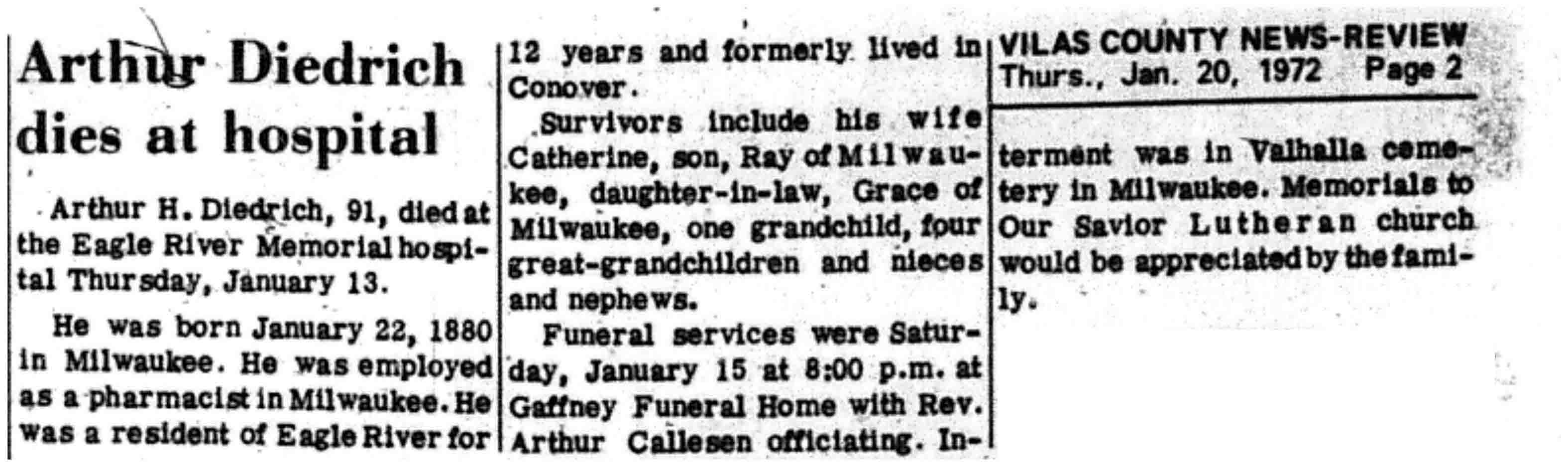 | Diedrich | Arthur H | 22 Jan 1880 | 13 Jan 1972 | VCN | 20 Jan 1972 | 2 |