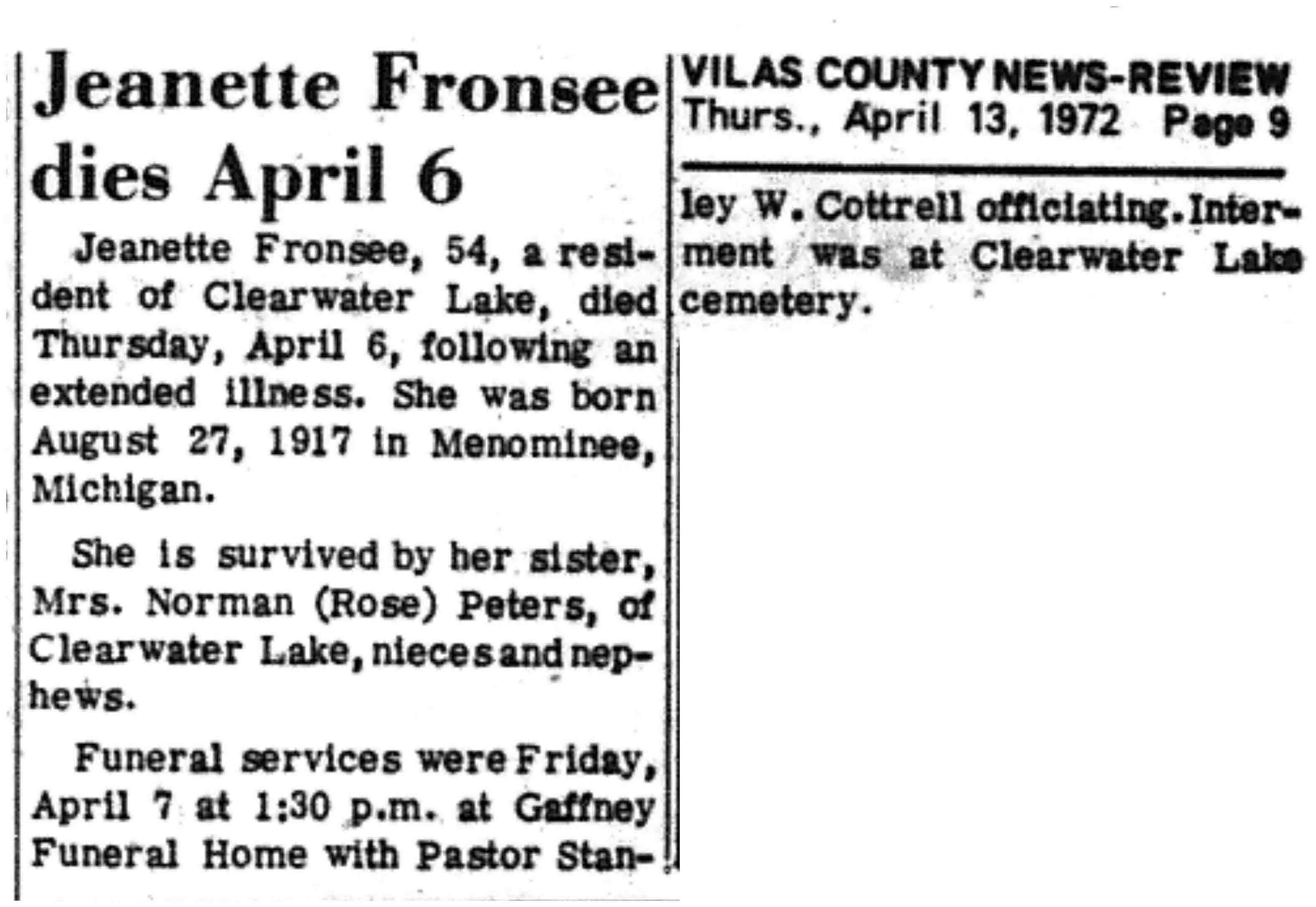 | Fronsee | Jeanette | 27 Aug 1917 | 06 Apr 1972 | VCN | 13 Apr 1972 | 9 |