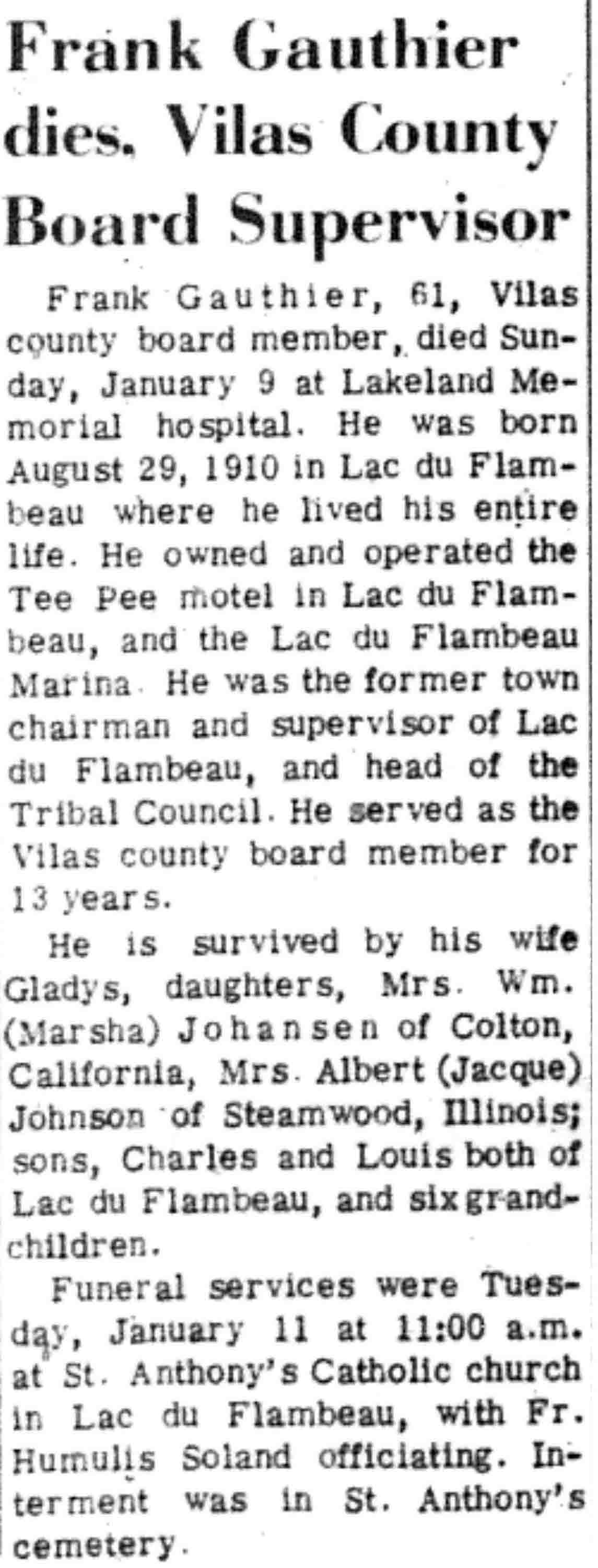 | Gauthier | Frank | 29 Aug 1910 | 09 Jan 1972 | VCN | 13 Jan 1972 | 1 |