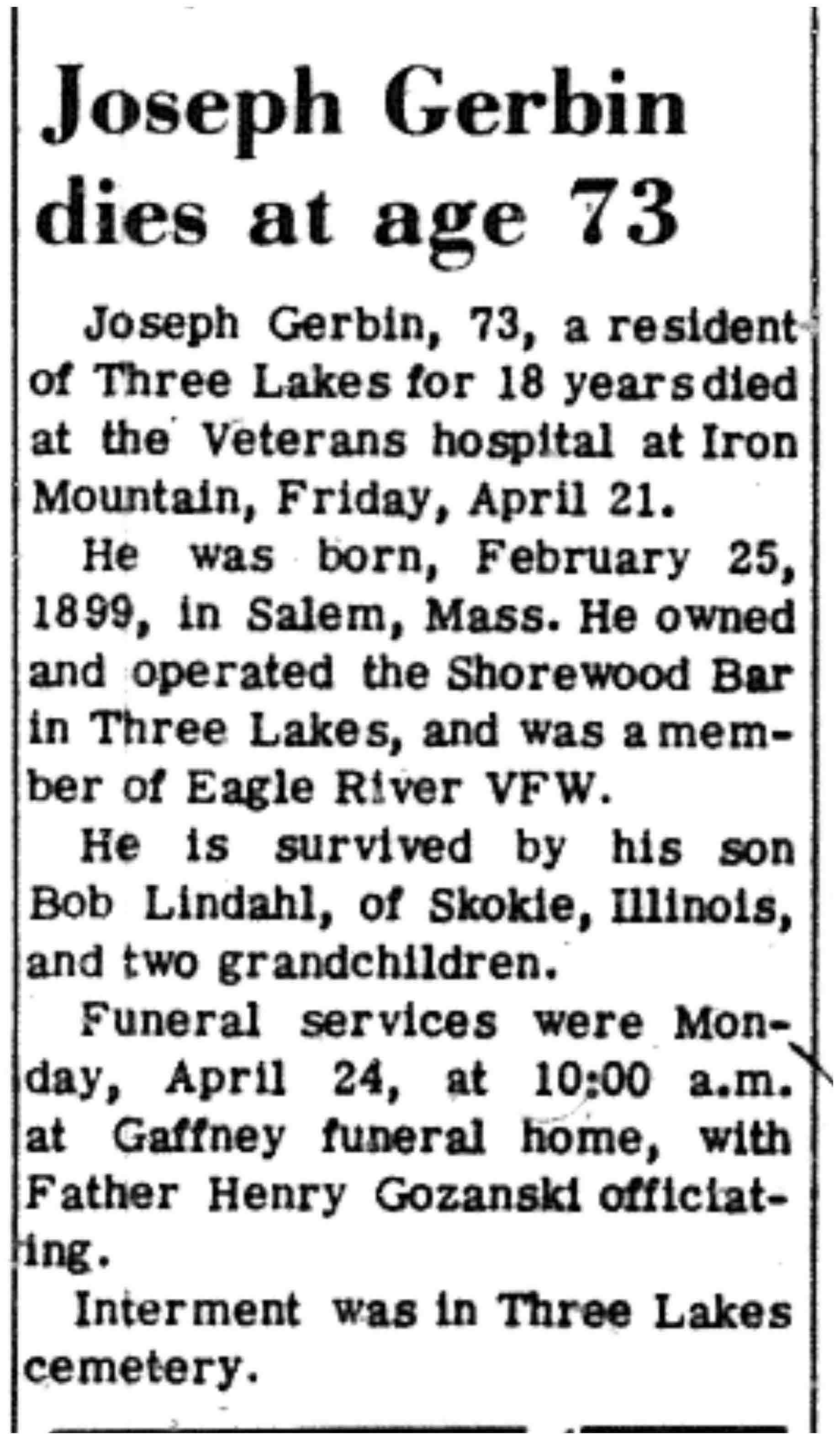 | Gerbin | Joseph | 25 Feb 1899 | 21 Apr 1972 | VCN | 27 Apr 1972 | 5 |