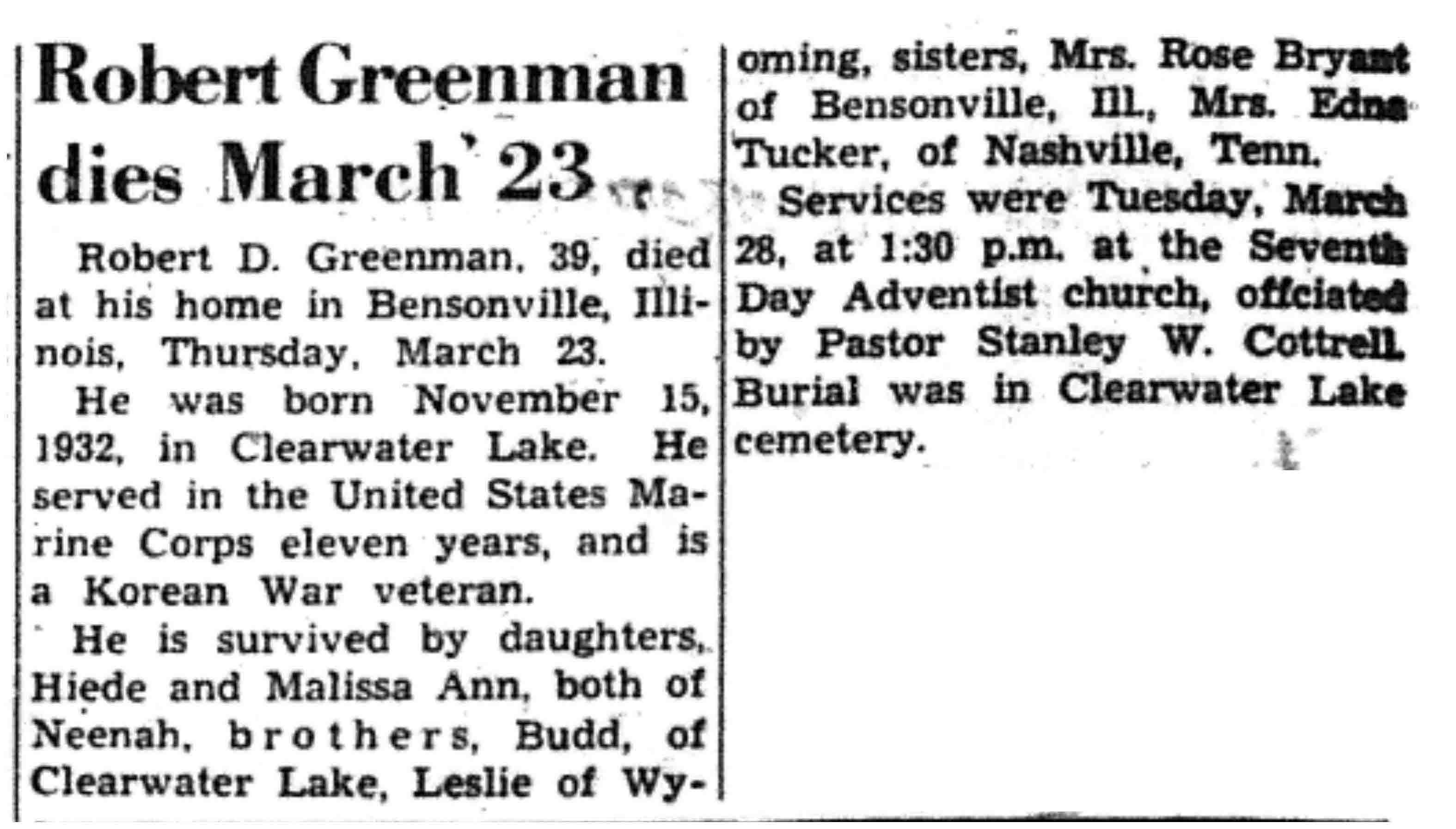 | Greenman | Robert D | 15 Nov 1932 | 23 Mar 1972 | VCN | 30 Mar 1972 | 2 |