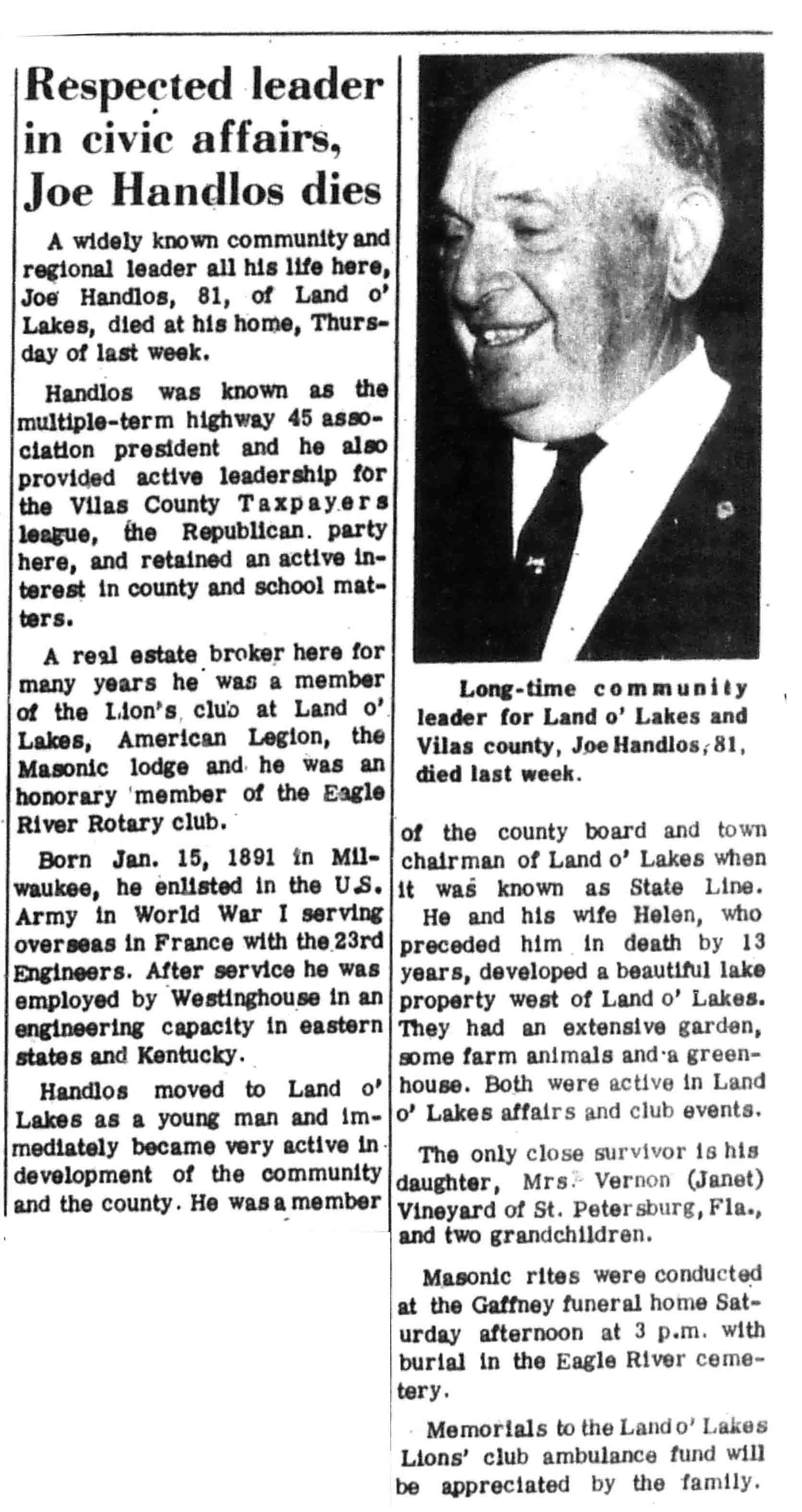 | Handlos | Joe | 15 Jan 1891 | 07 Sep 1972 | VCN | 14 Sep 1972 | 1 |