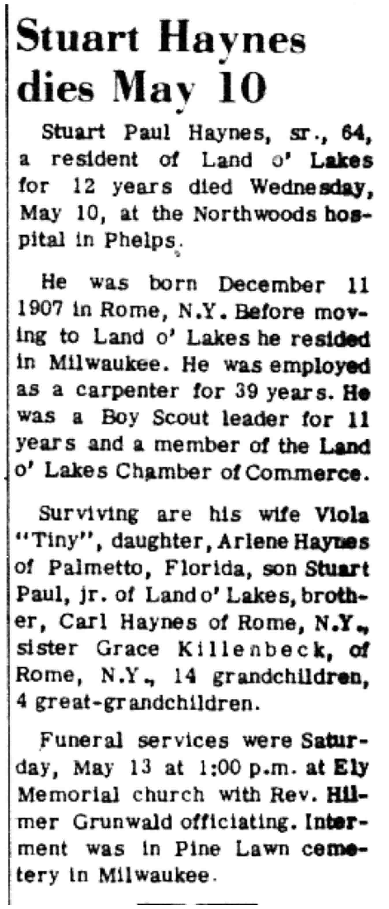 | Haynes | Stuart Paul, Sr | 11 Dec 1907 | 10 May 1972 | VCN | 18 May 1972 | 9 |