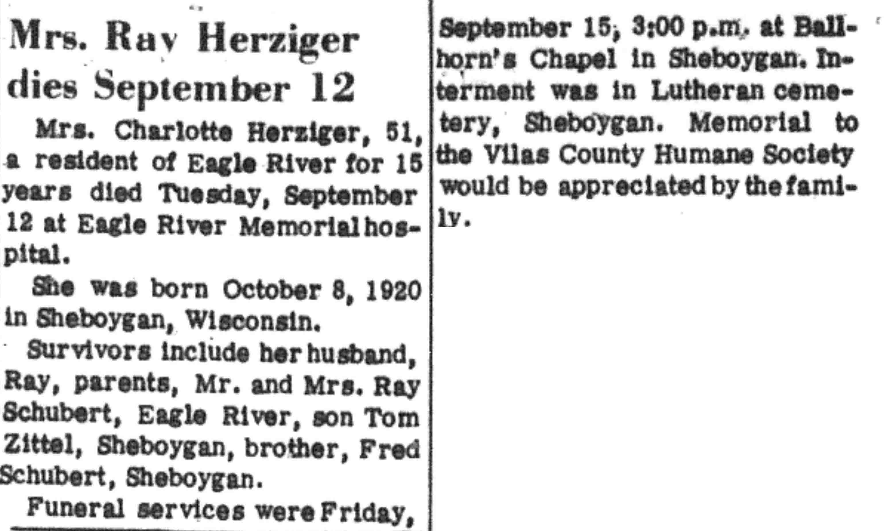 | Herzinger | Charlotte (Schubert) | 08 Oct 1920 | 12 Sep 1972 | VCN | 21 Sep 1972 | 8 |
