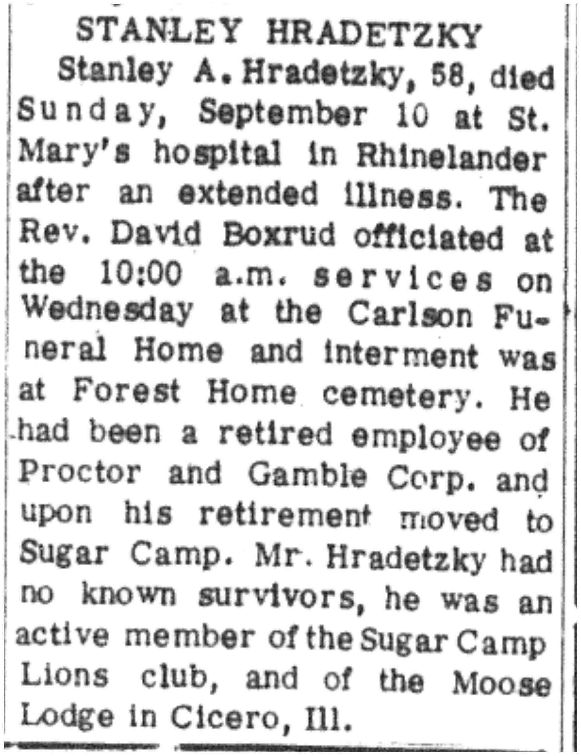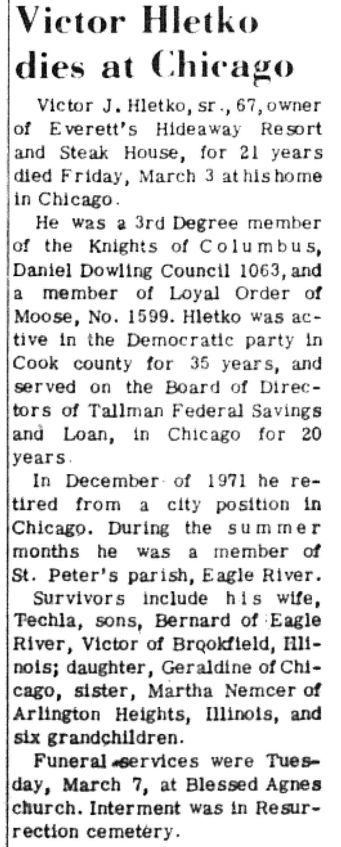 | Hletko | Victor J, Sr | c 1905 | 03 Mar 1972 | VCN | 16 Mar 1972 | 1 |