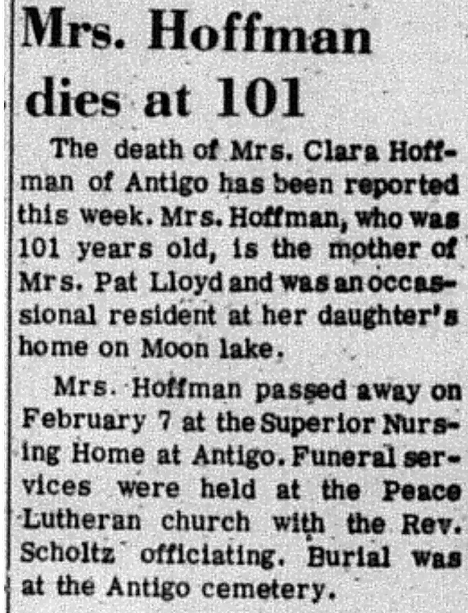 | Hoffman | Clara | c 1870 | 07 Feb 1972 | VCN | 17 Feb 1972 | 3 |