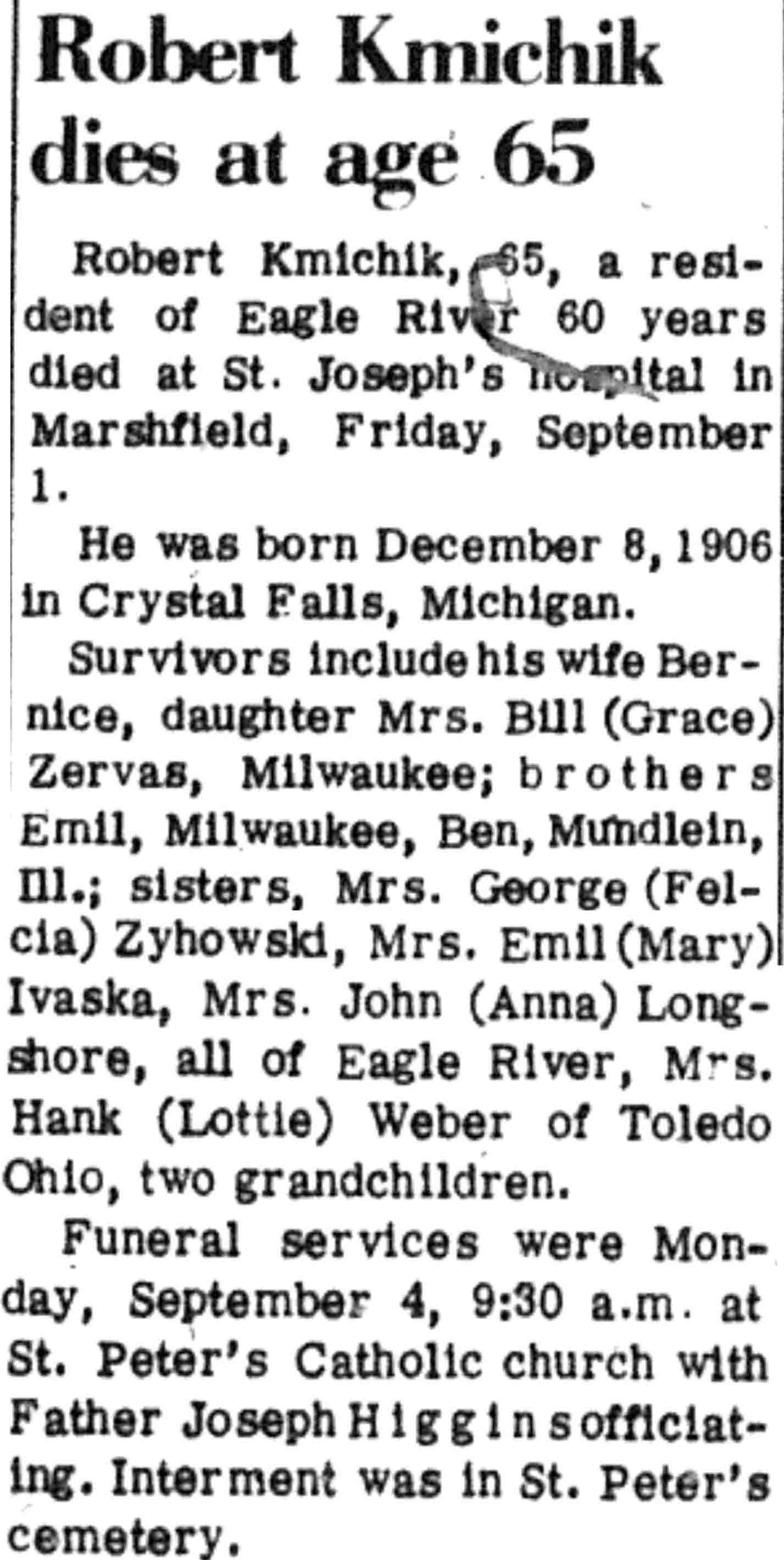 | Zmek | James, Sr | 30 May 1884 | 03 Aug 1972 | VCN | 10 Aug 1972 | 2 |