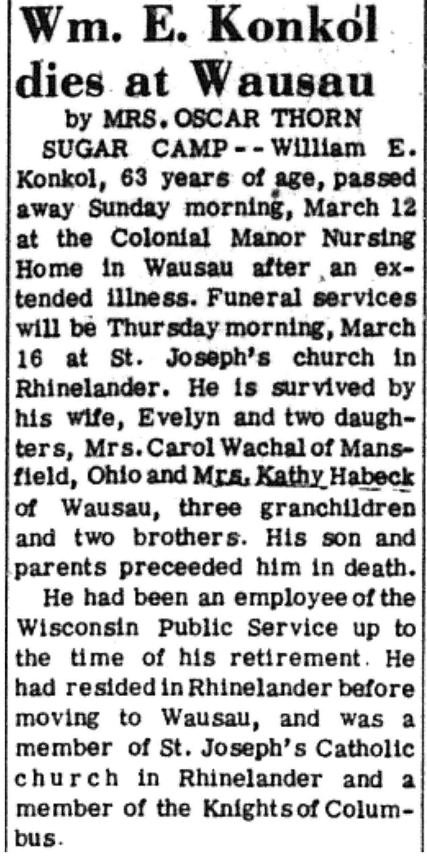 | Konkol | William E | c 1909 | 12 Mar 1972 | VCN | 16 Mar 1972 | 8 |