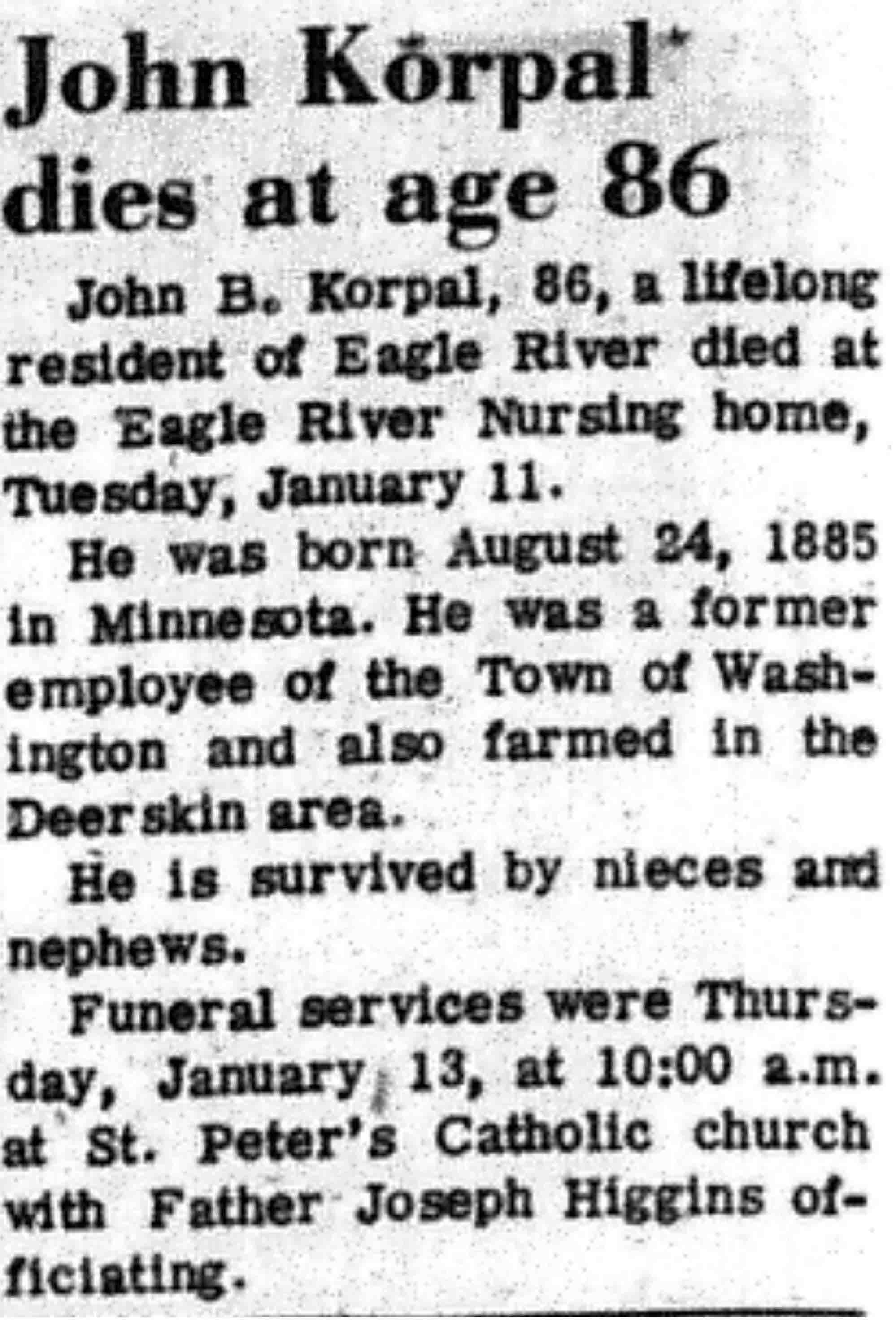 | Korpal | John B | 24 Aug 1885 | 11 Jan 1972 | VCN | 20 Jan 1972 | 6 |