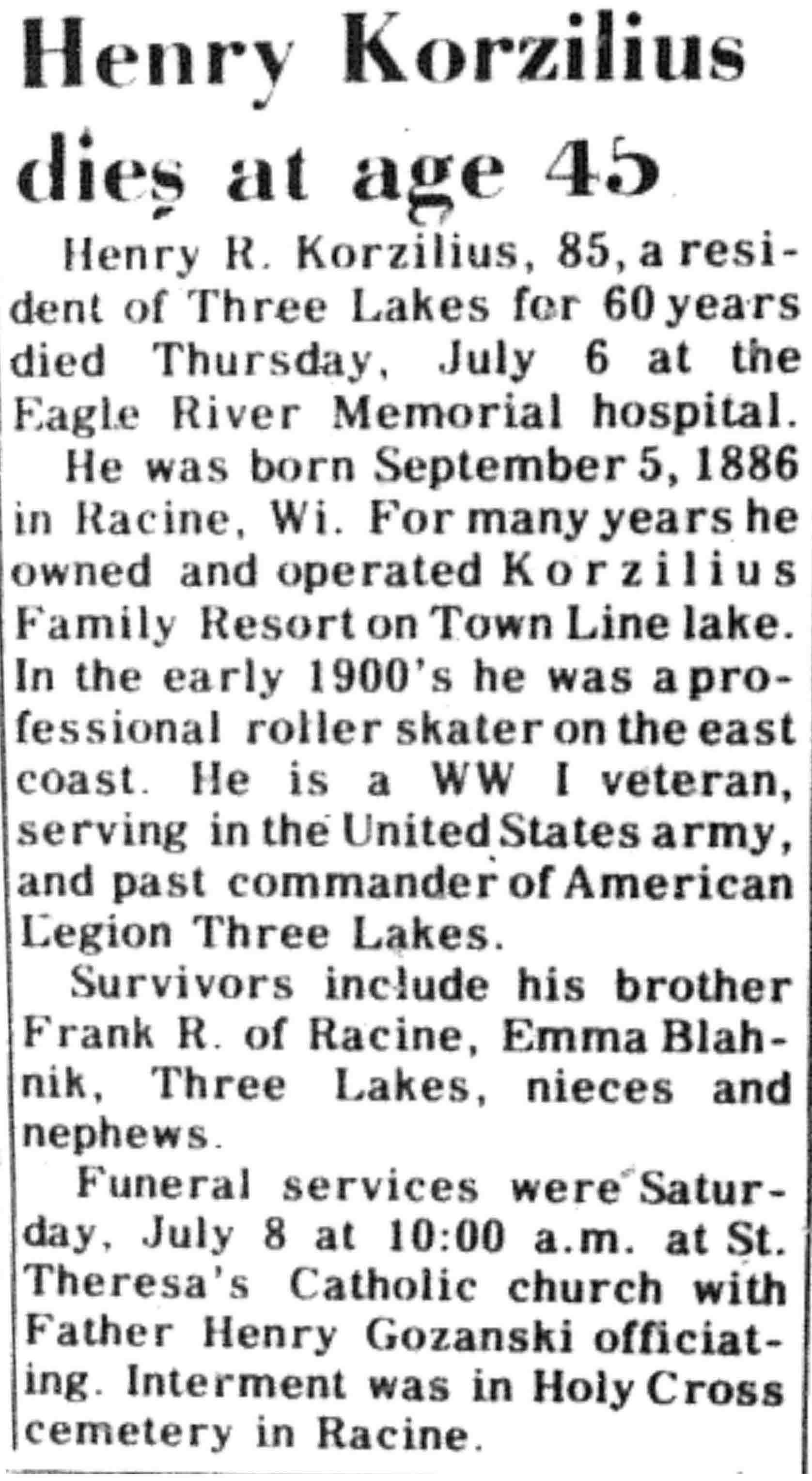 | Korzilius | Henry R | 05 Sep 1886 | 06 Jul 1972 | VCN | 13 Jul 1972 | 2 |