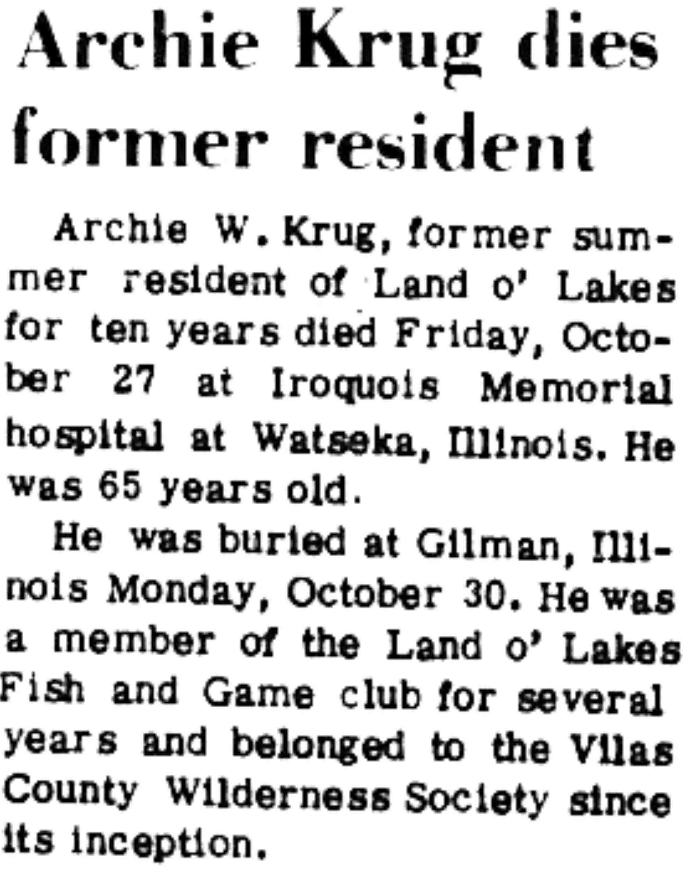 | Krug | Archie W | c 1907 | 03 Nov 1972 | VCN | 09 Nov 1972 | 6 |