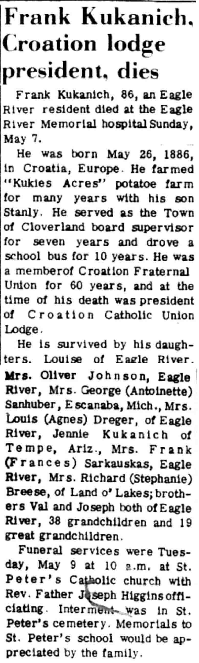 | Kukanich | Frank | 26 May 1886 | 07 May 1972 | VCN | 11 May 1972 | 10 |