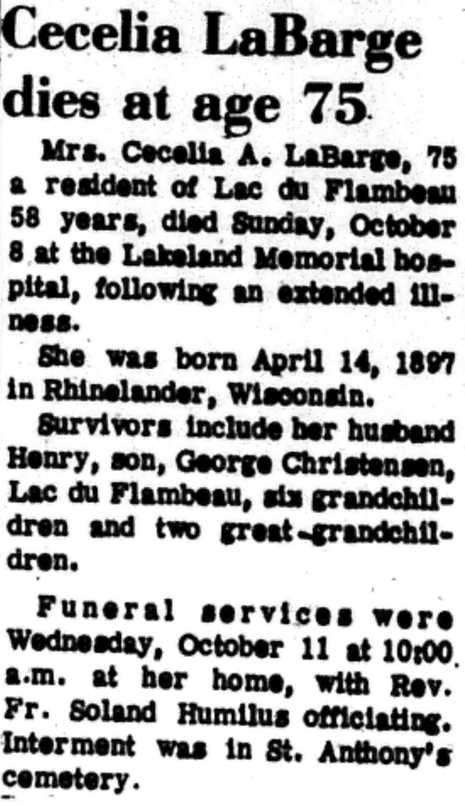 | LaBarge | Cecelia A | 14 Apr 1897 | 08 Oct 1972 | VCN | 19 Oct 1972 | 3 |