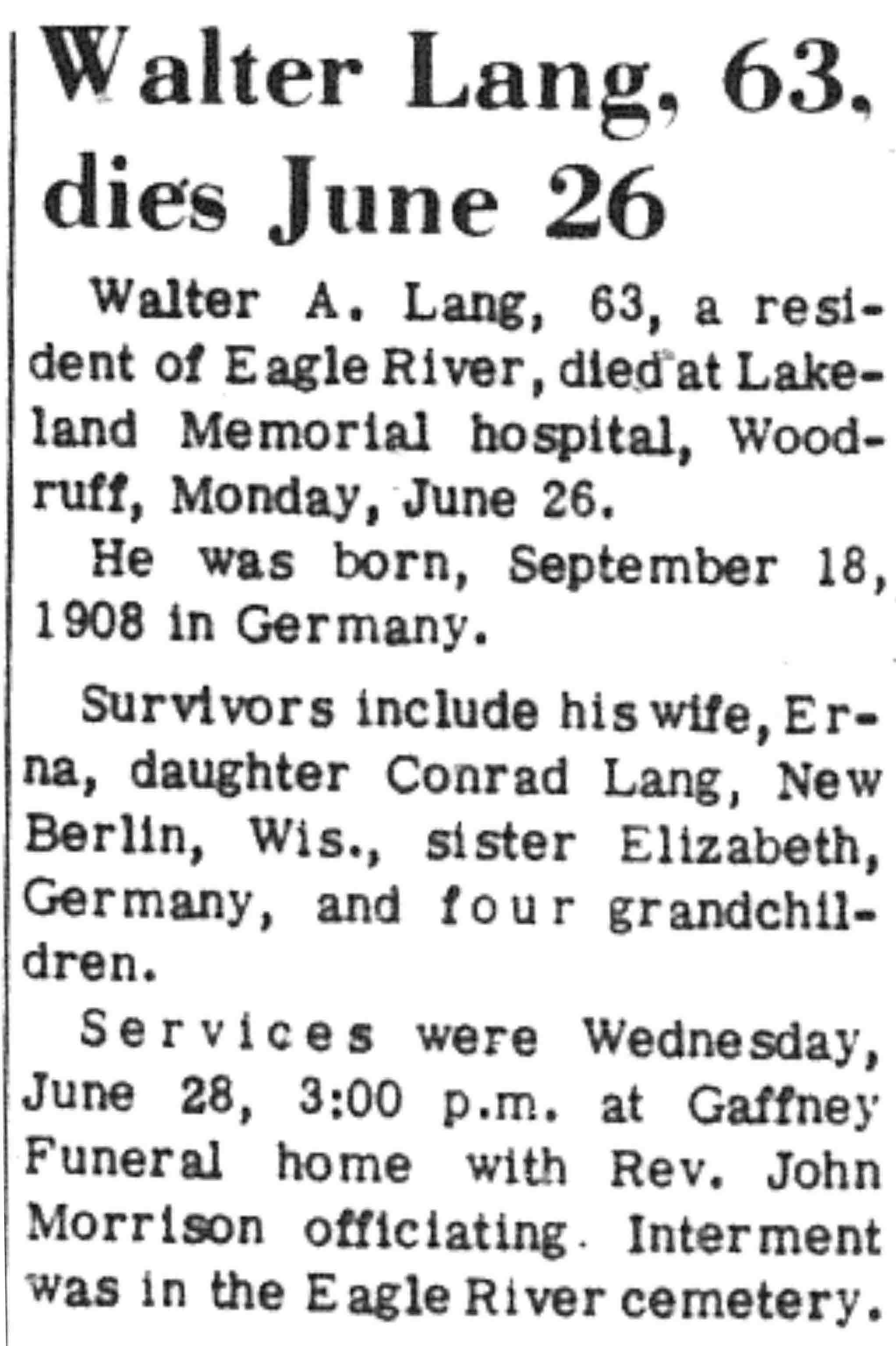 | Lang | Walter A | 18 Sep 1908 | 26 Jun 1972 | VCN | 29 Jun 1972 | 3 |