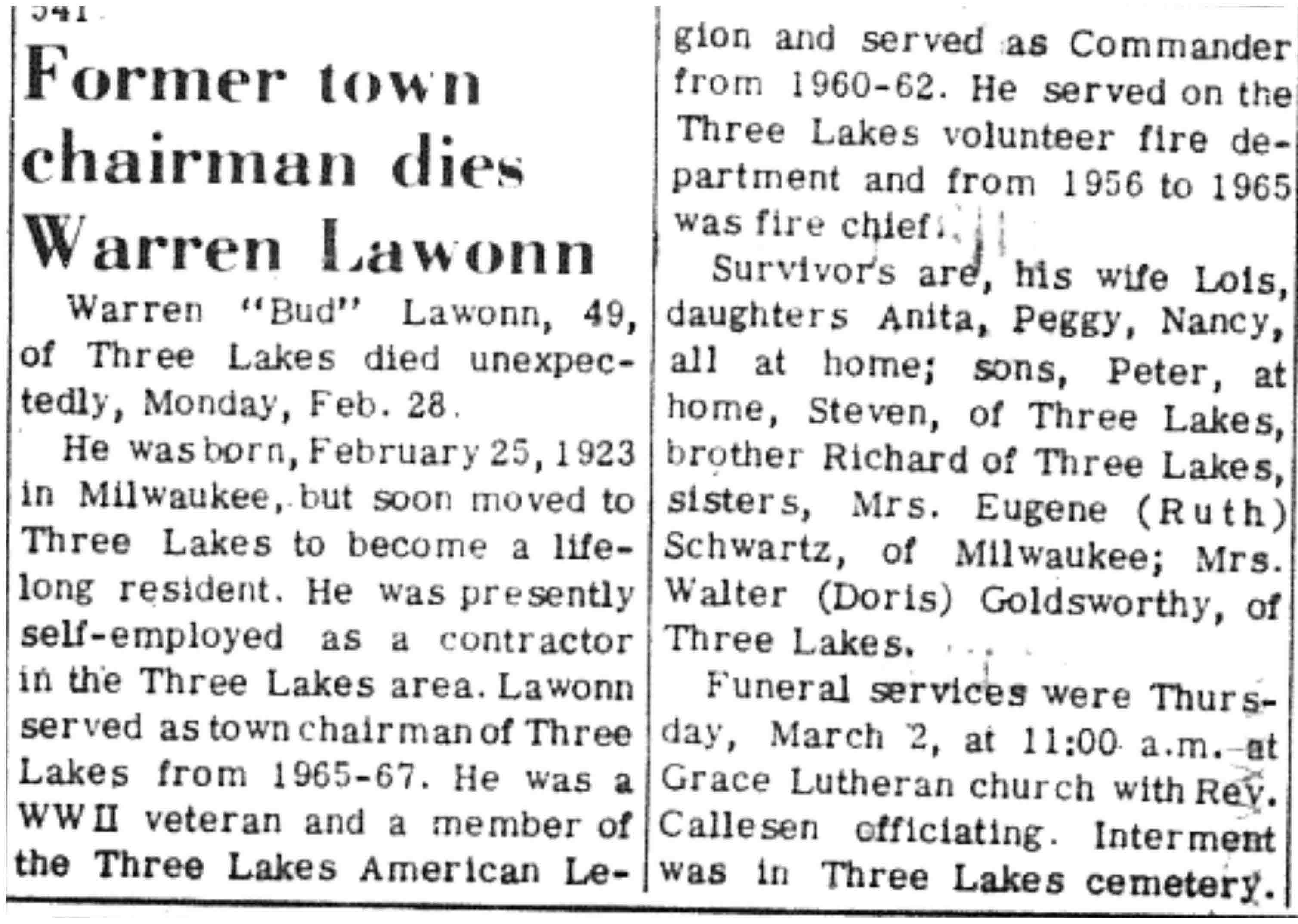 | Lawonn | Warren 'Bud' | 25 Feb 1923 | 28 Feb 1972 | VCN | 02 Mar 1972 | 8 |