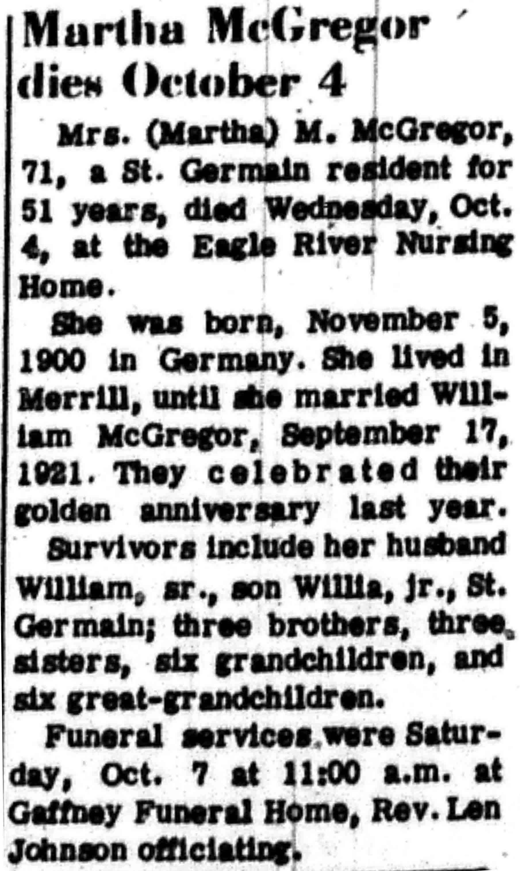 | McGregor | Martha | 05 Nov 1900 | 04 Oct 1972 | VCN | 12 Oct 1972 | 8 |