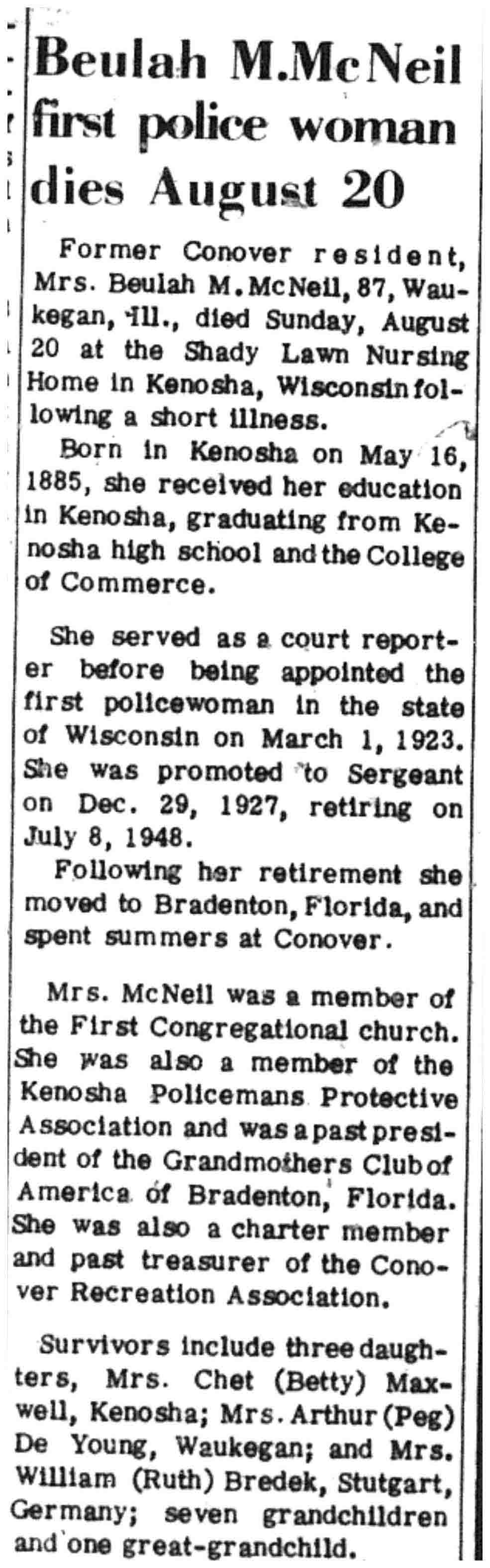 | McNeil | Beulah M | 16 May 1895 | 20 Aug 1972 | VCN | 31 Aug 1972 | 2 |