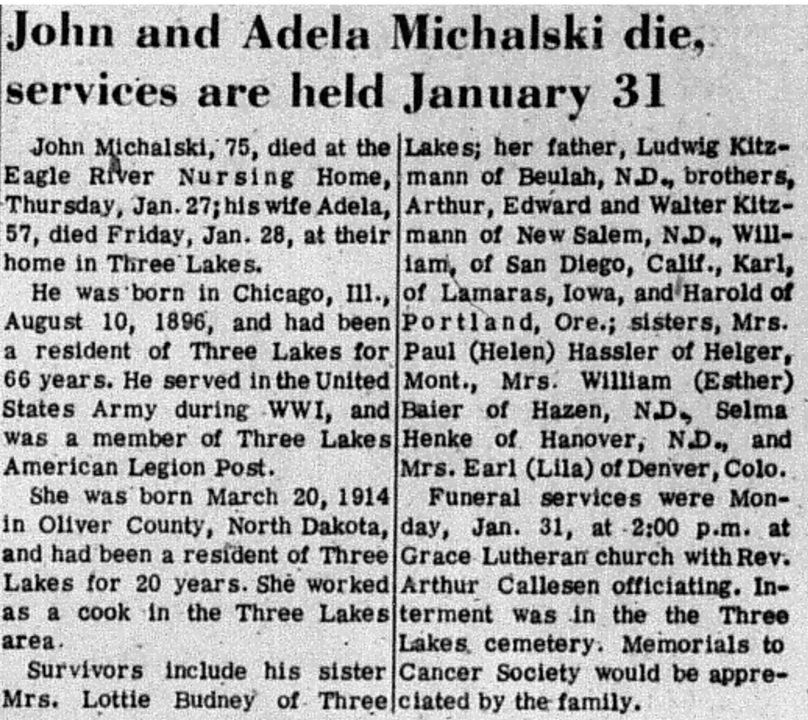 | Michalski | Adela (Kitzmann) | 20 Mar 1914 | 28 Jan 1972 | VCN | 03 Feb 1972 | 8 |