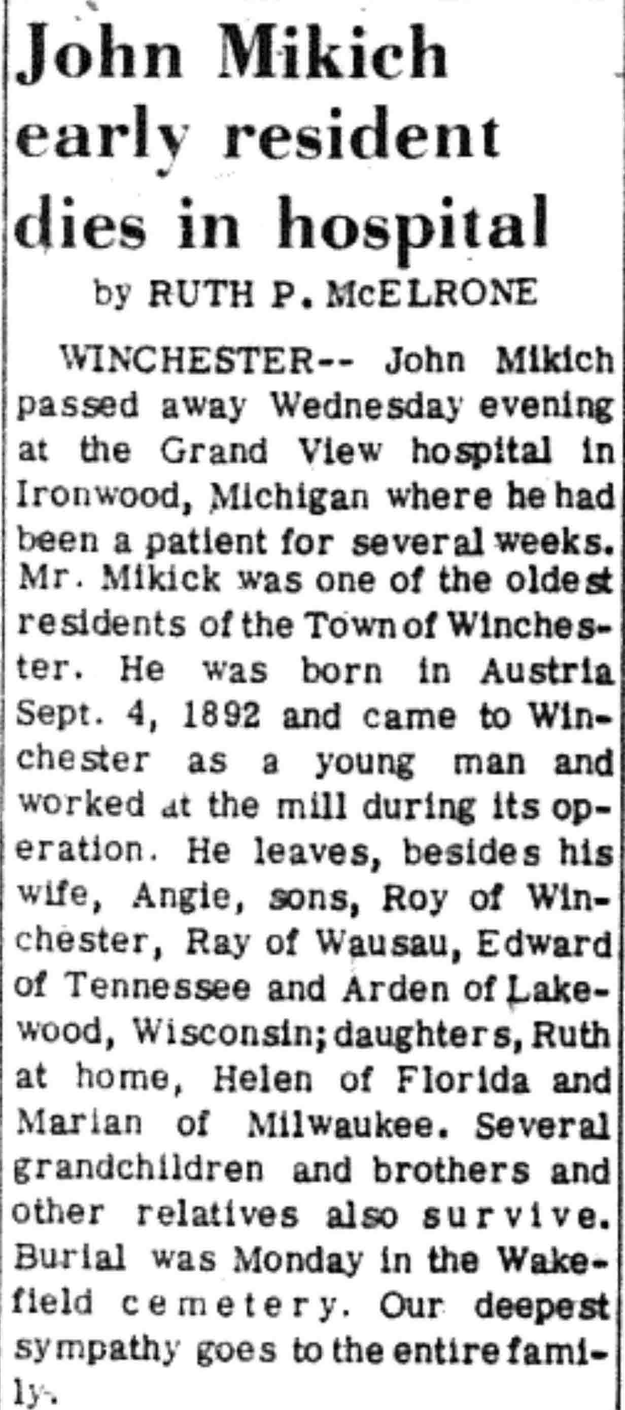 | Mikich | John | 04 Sep 1892 | 15 Mar 1972 | VCN | 16 Mar 1972 | 7 |