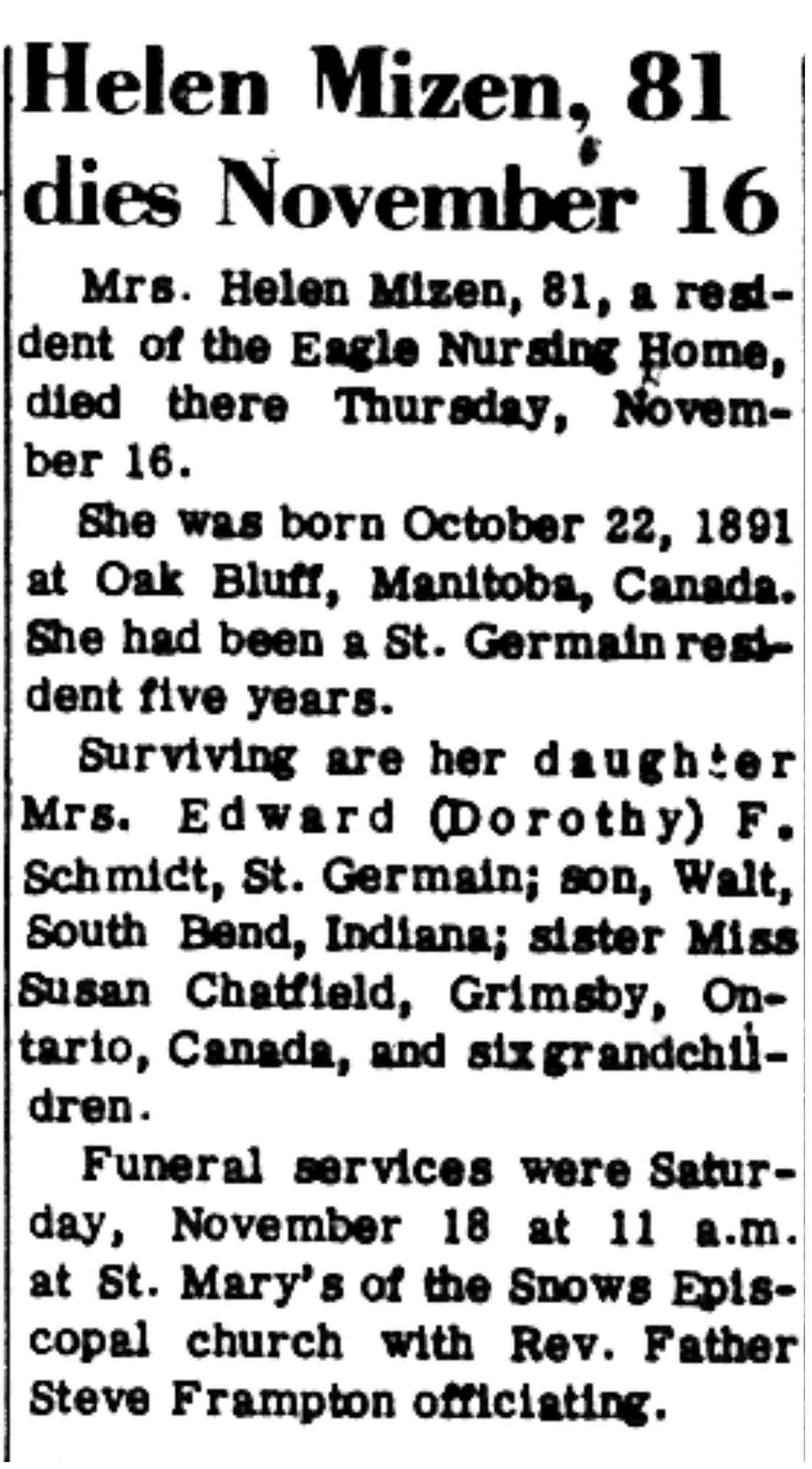 | Mizen | Helen | 22 Oct 1891 | 16 Nov 1972 | VCN | 23 Nov 1972 | 3 |