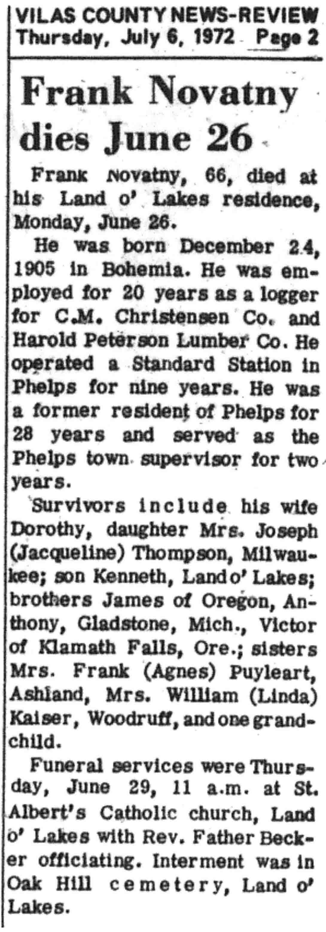 | Novatny | Frank | 24 Dec 1905 | 26 Jun 1972 | VCN | 06 Jul 1972 | 2 |