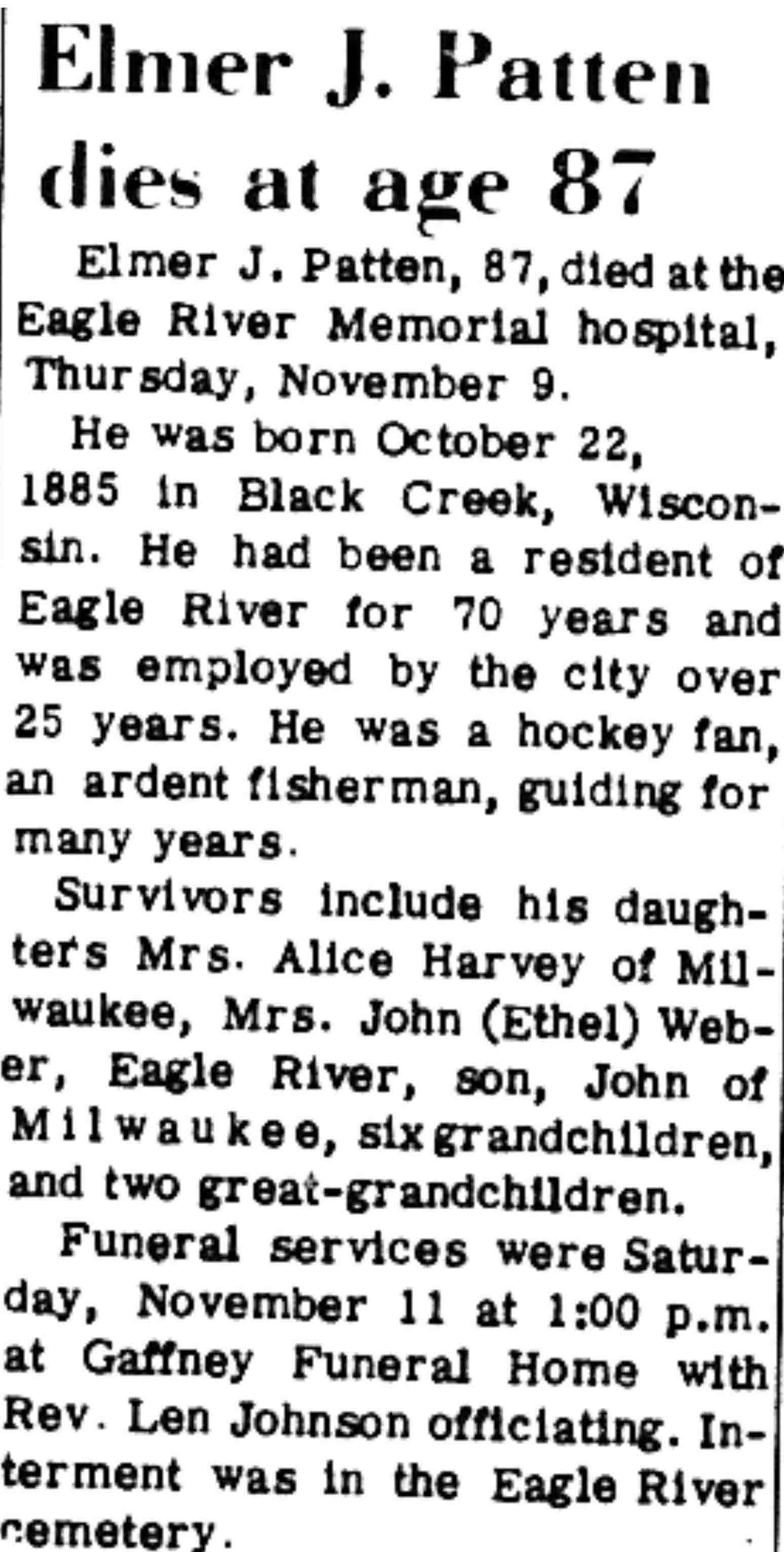 | Patten | Elmer J | 22 Oct 1885 | 09 Nov 1972 | VCN | 16 Nov 1972 | 10 |