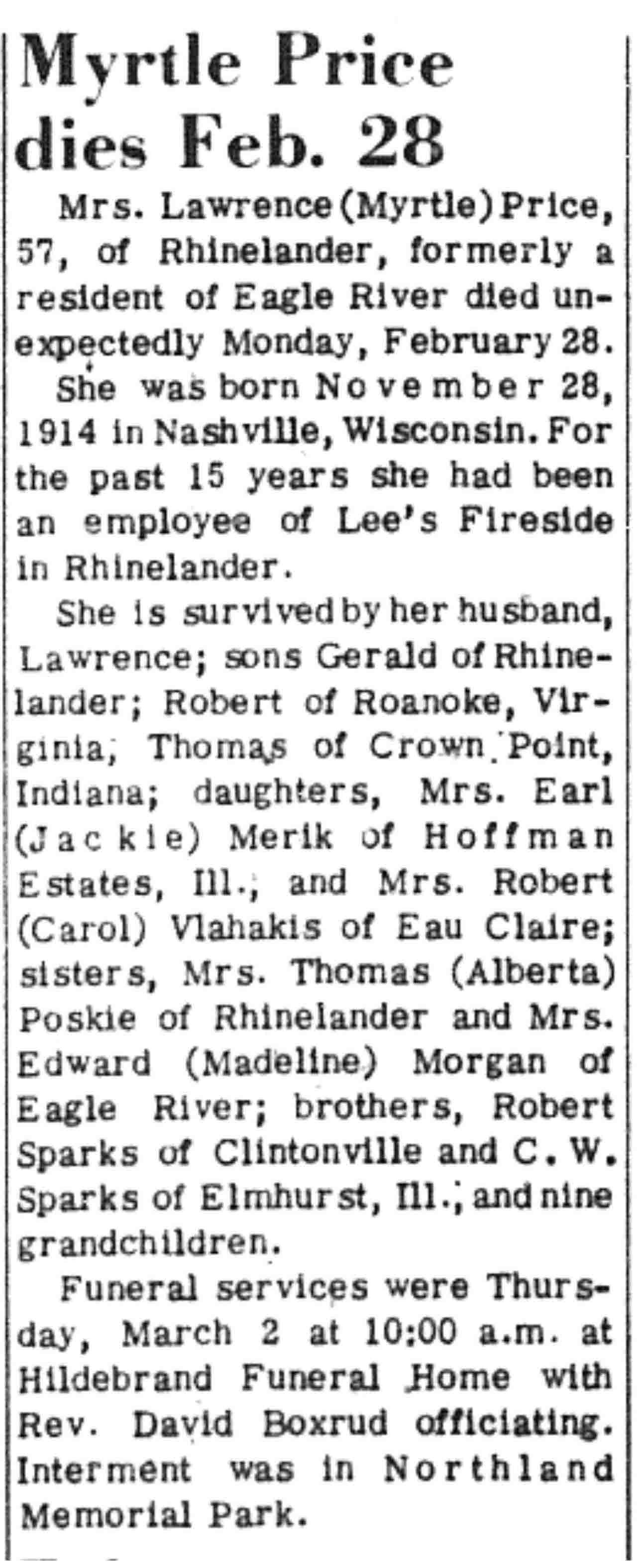 | Price | Myrtle (Sparks) | 28 Nov 1914 | 28 Feb 1972 | VCN | 09 Mar 1972 | 8 |
