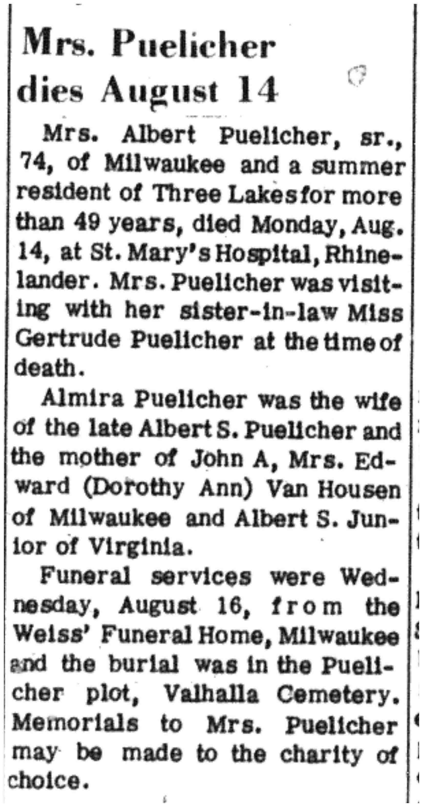 | Puelicher | Almira | c 1898 | 14 Aug 1972 | VCN | 24 Aug 1972 | 9 |