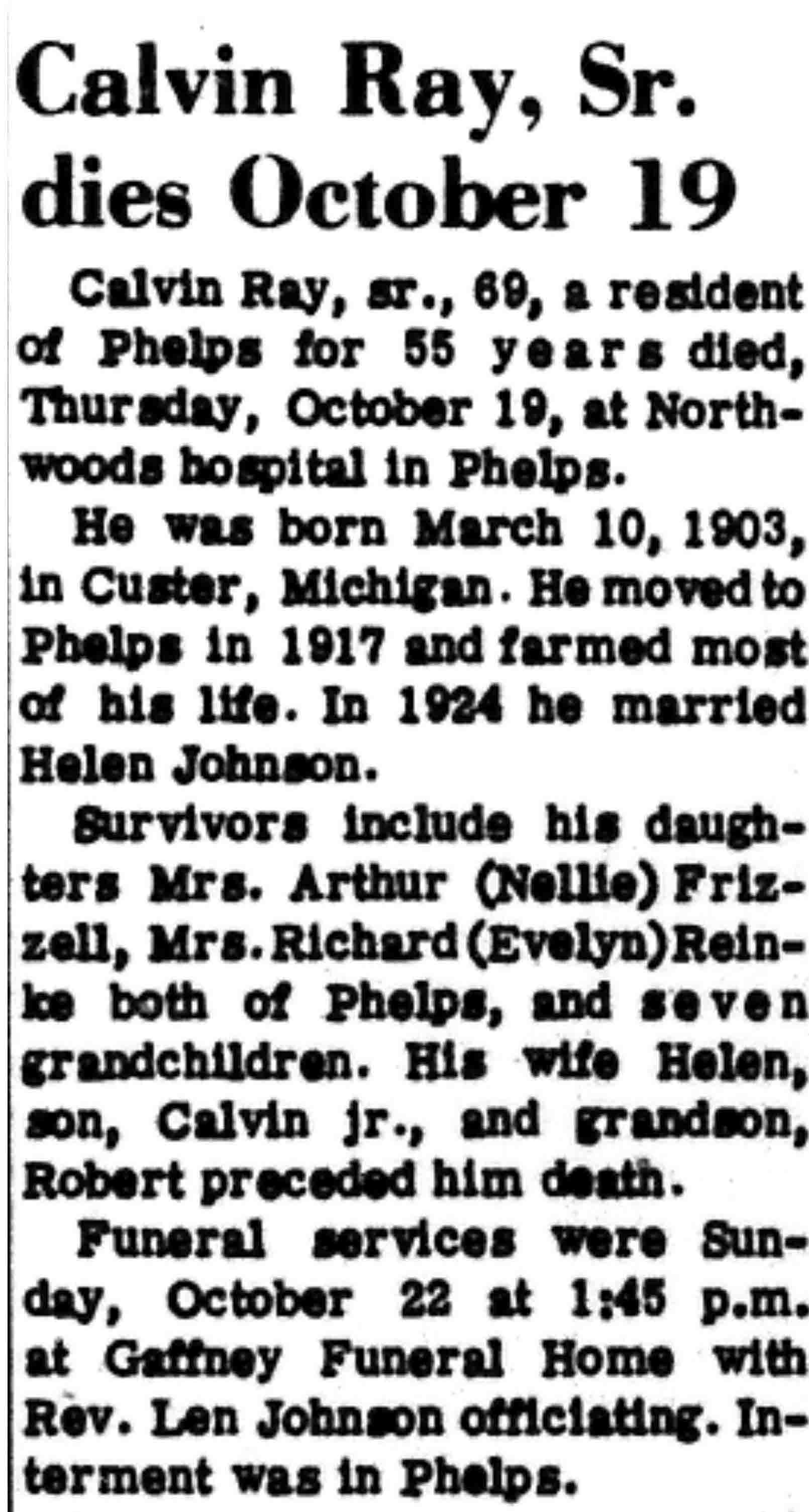 | Ray | Calvin, Sr | 10 Mar 1903 | 19 Oct 1972 | VCN | 26 Oct 1972 | 6 |