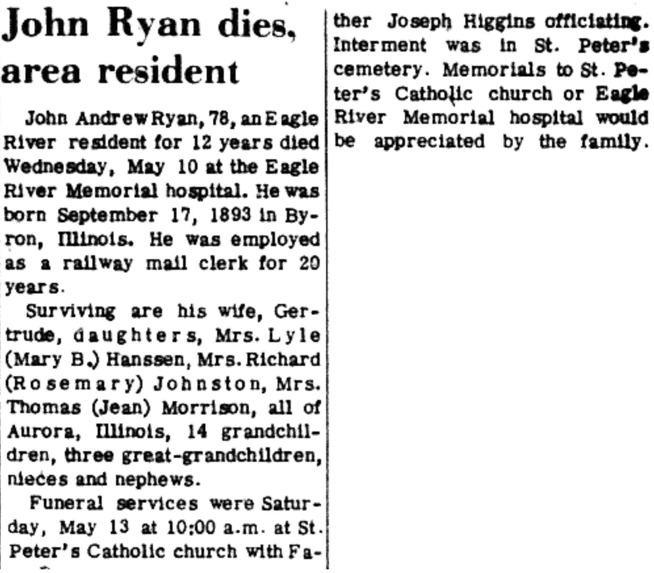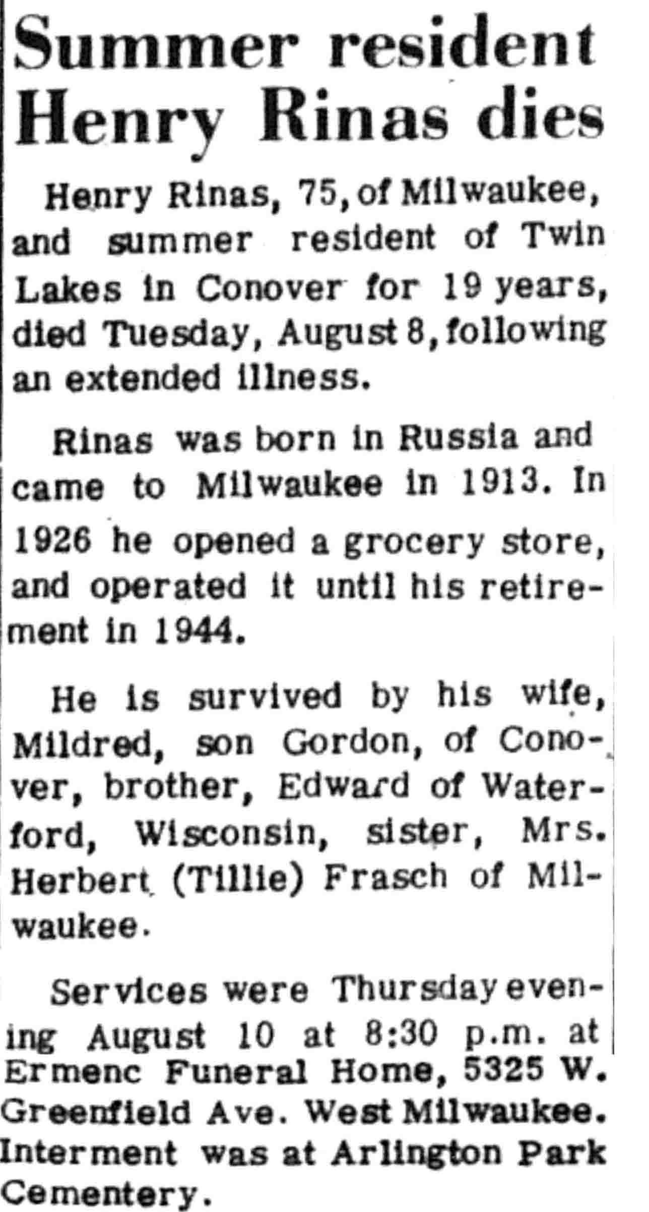 | Rinas | Henry | c 1897 | 08 Aug 1972 | VCN | 17 Aug 1972 | 14 |