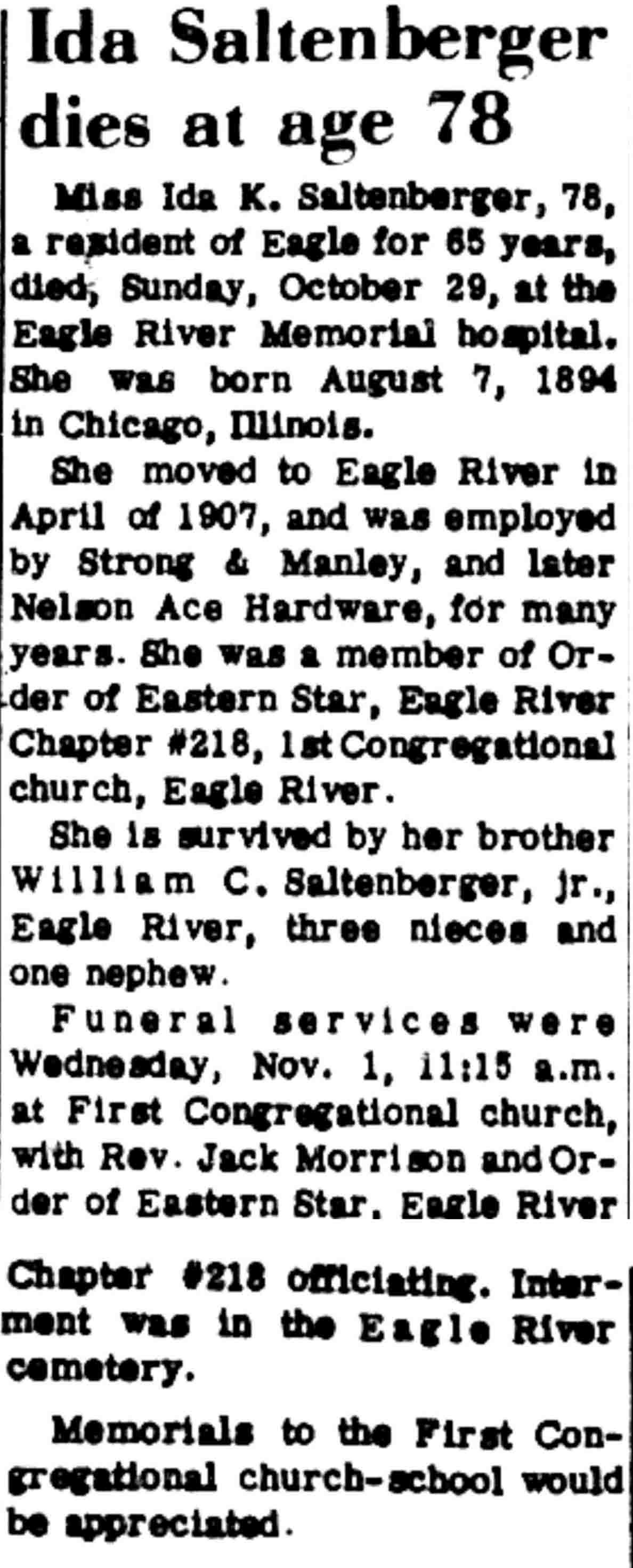 | Saltenberger | Ida K | 07 Aug 1894 | 29 Oct 1972 | VCN | 02 Nov 1972 | 10 |