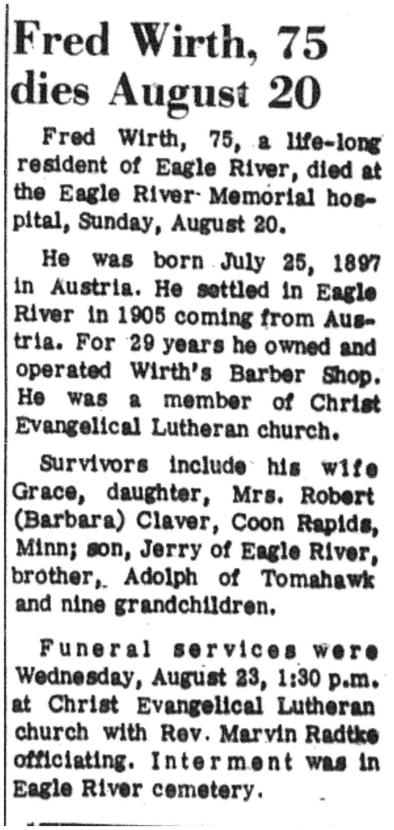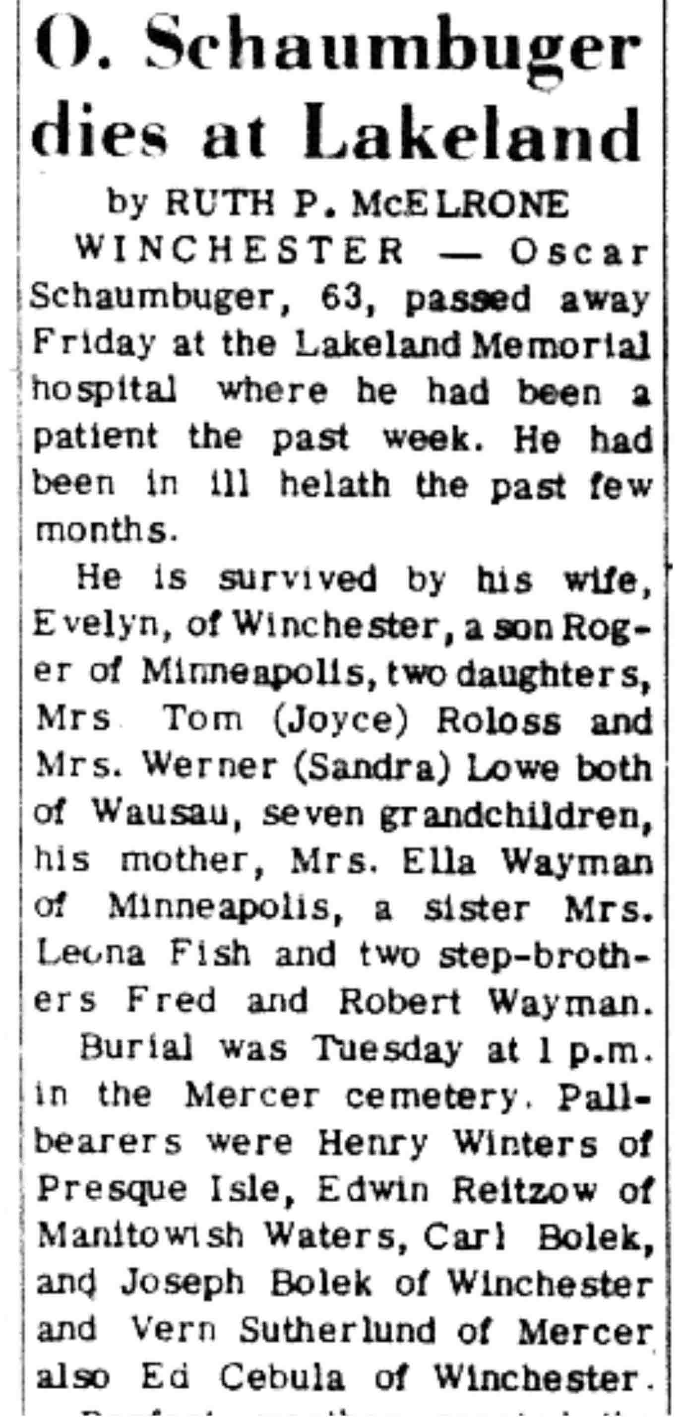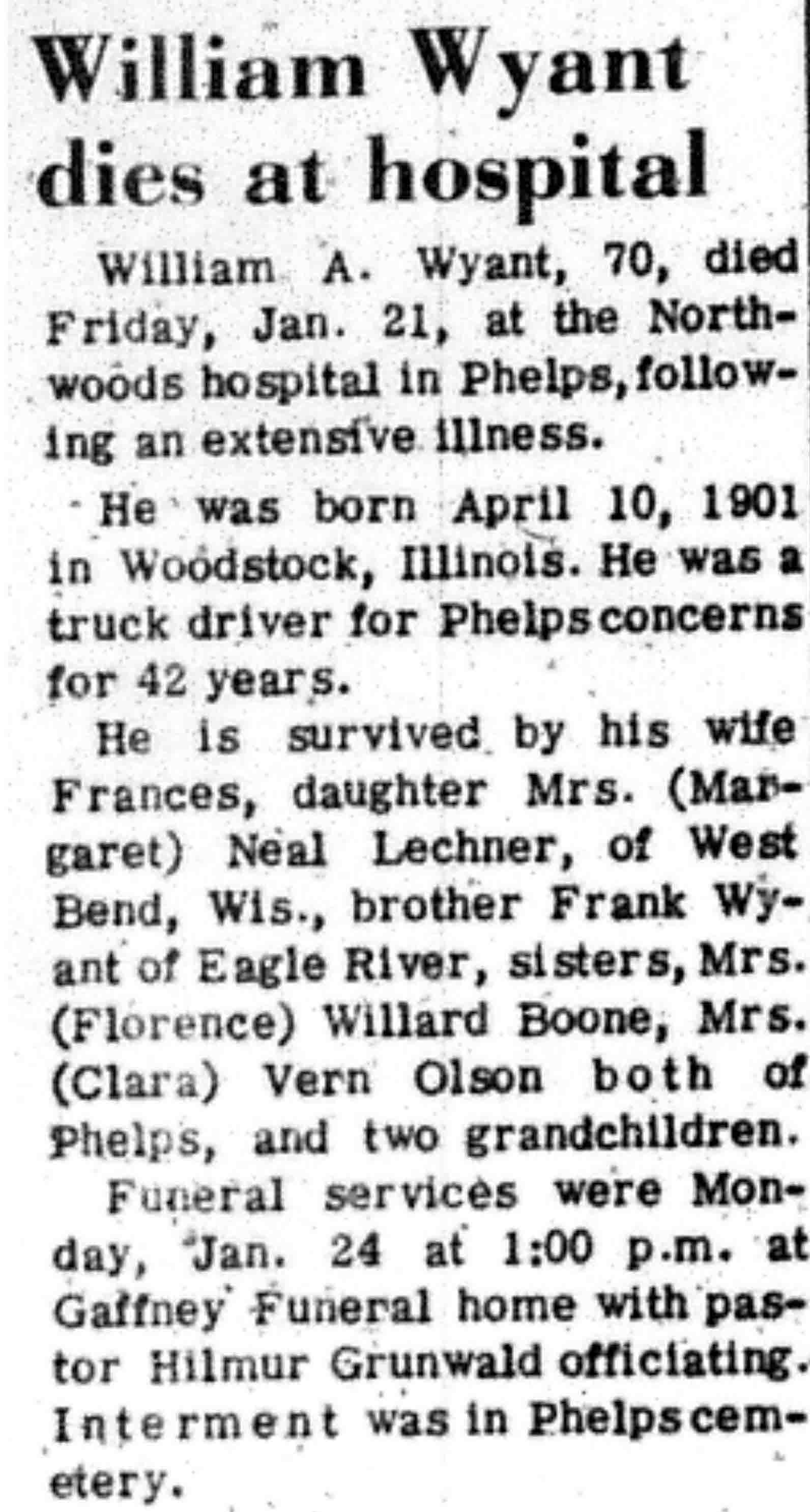 | Wolter | Harriett (Prieve) | 05 Jun 1909 | 18 May 1972 | VCN | 25 May 1972 | 7 |