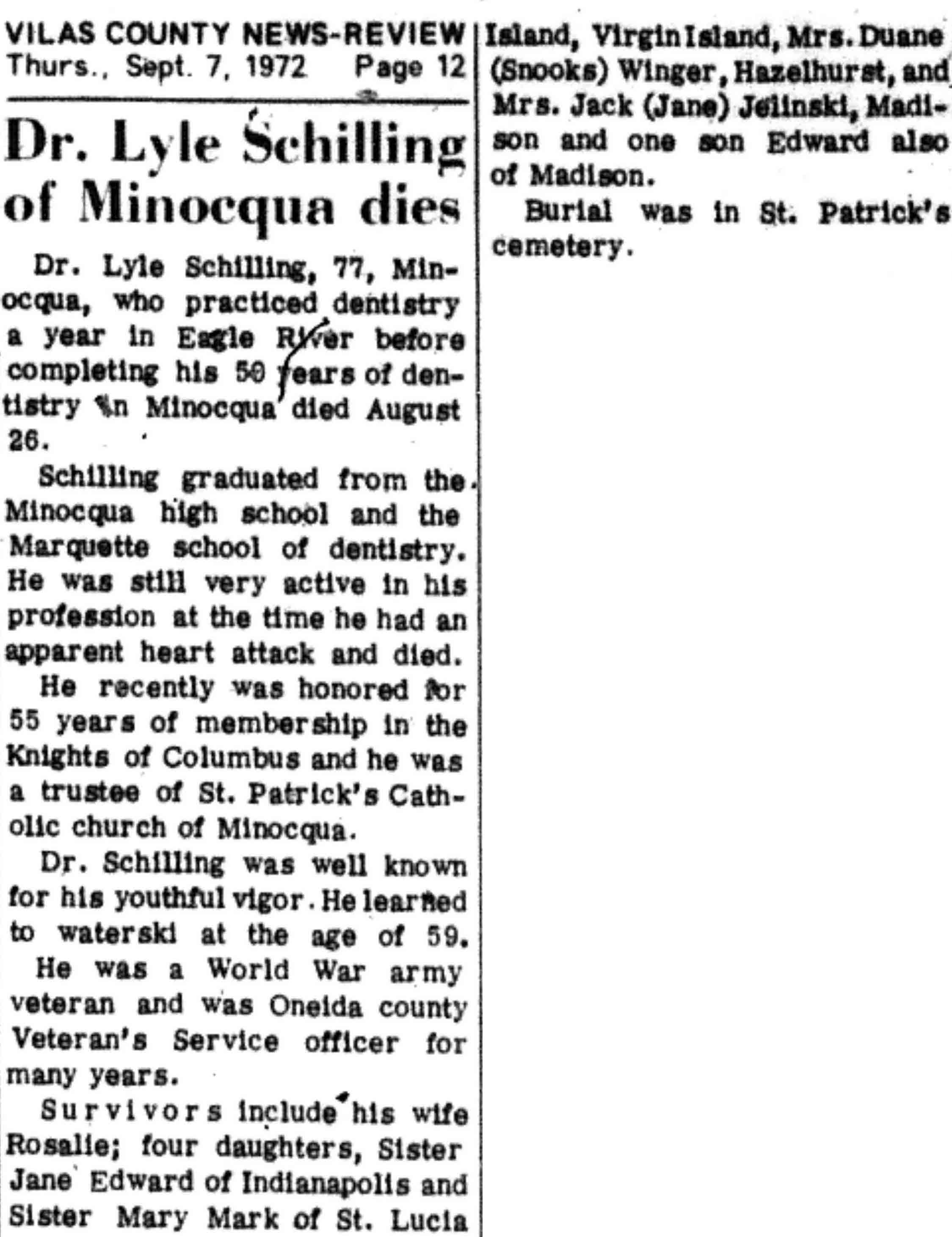 | Schilling | Lyne, Dr | c 1895 | 26 Aug 1972 | VCN | 07 Sep 1972 | 12 |