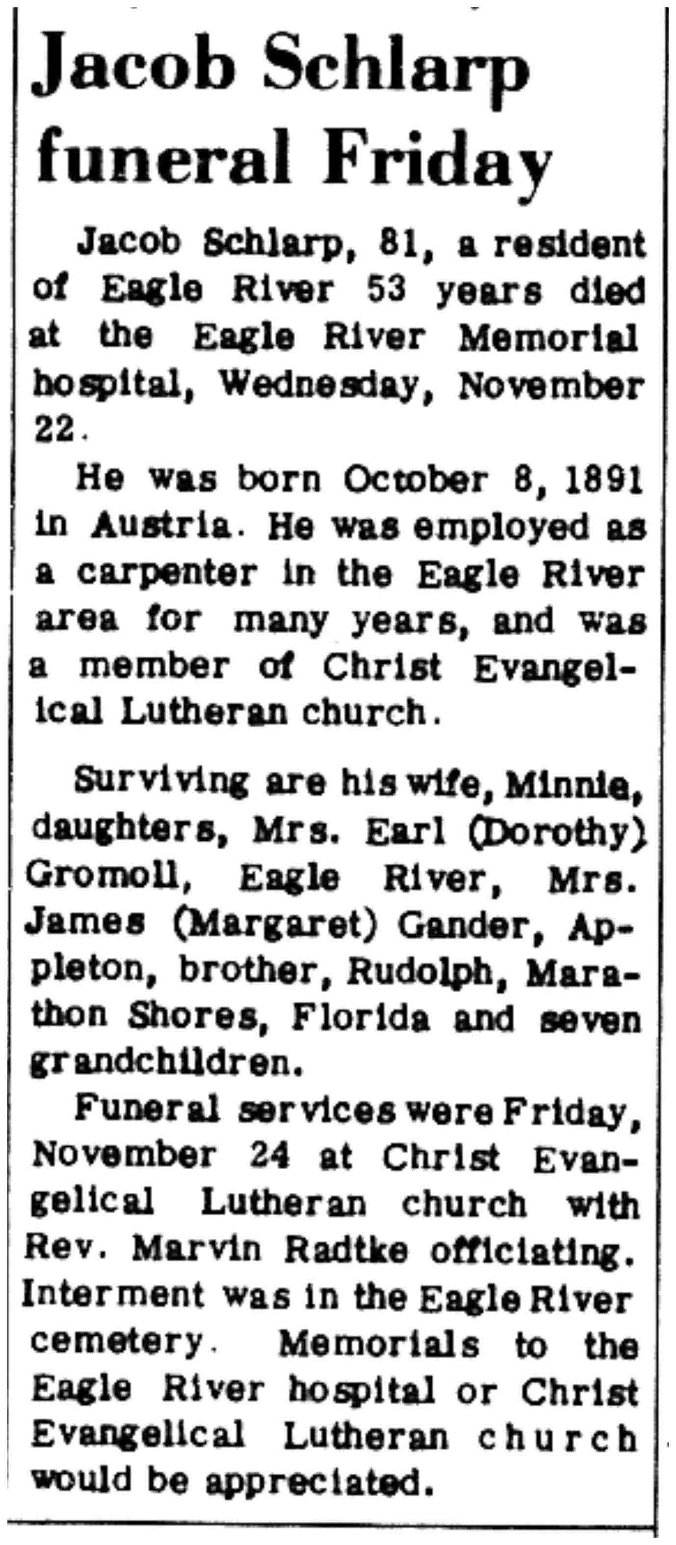 | Schlarp | Jacob | 08 Oct 1891 | 22 Nov 1972 | VCN | 30 Nov 1972 | 12 |