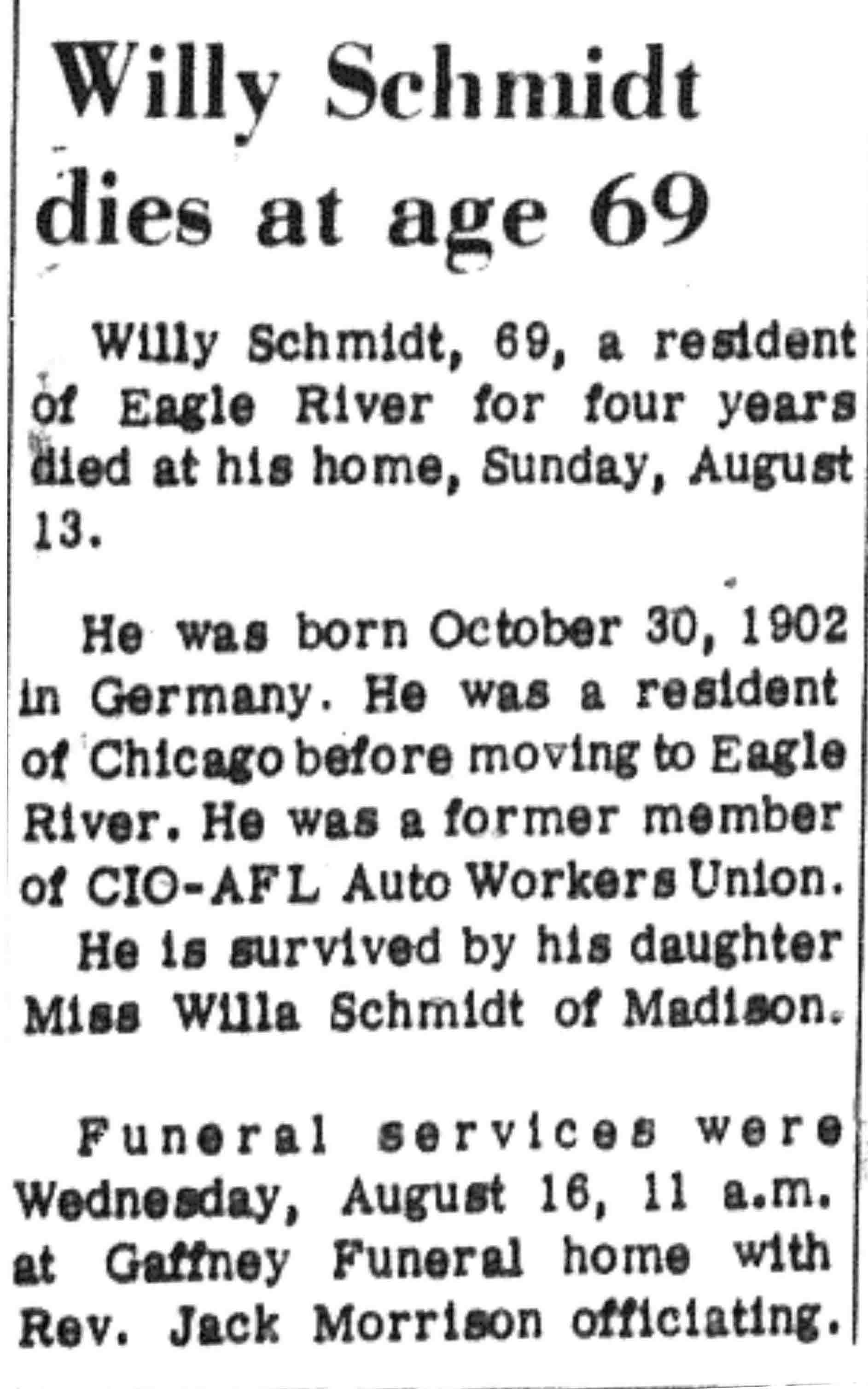 | Schmidt | Willy | 30 Oct 1902 | 13 Aug 1972 | VCN | 24 Aug 1972 | 8 |