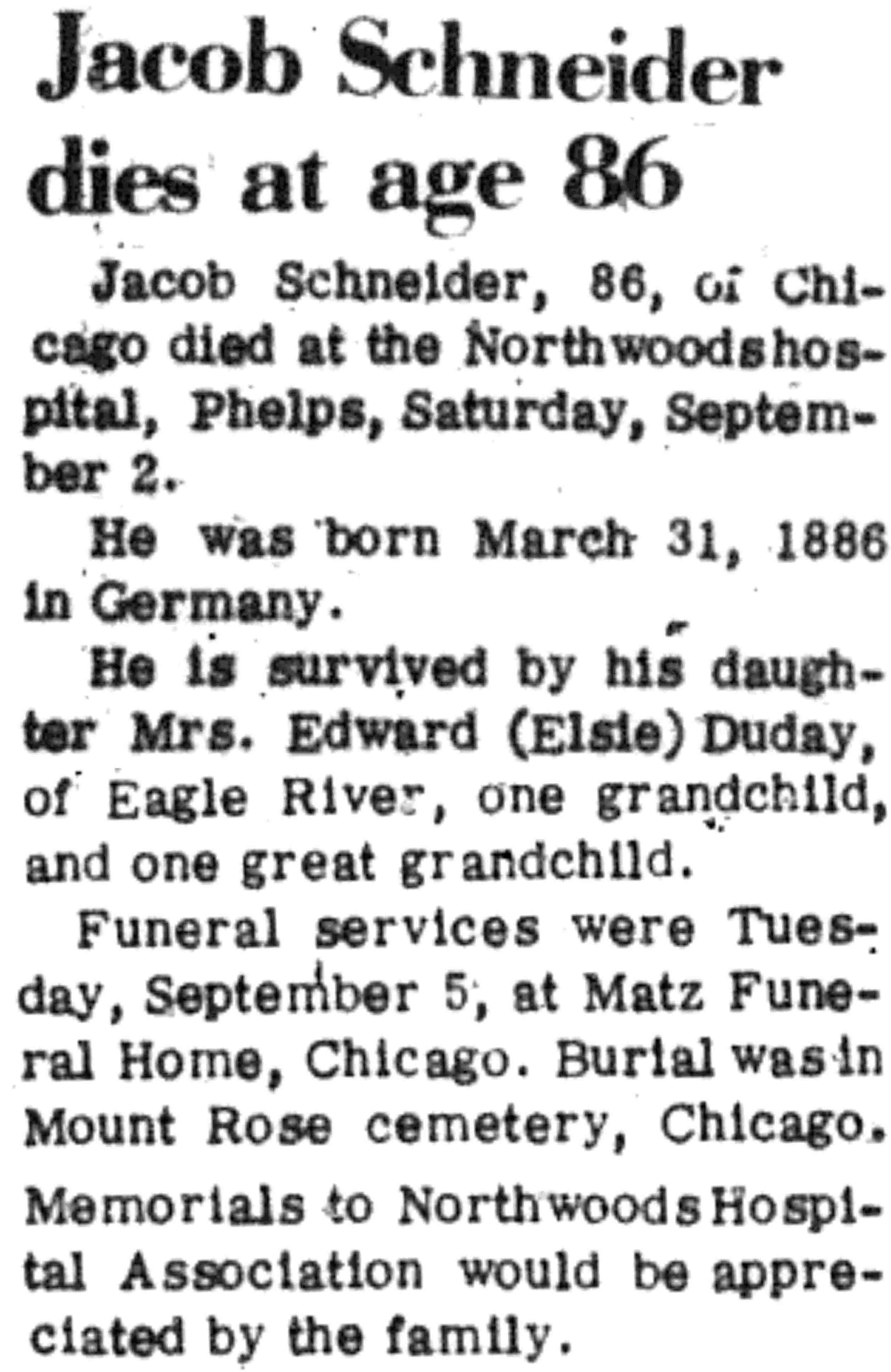 | Schneider | Jacob | 31 Mar 1886 | 02 Sep 1972 | VCN | 07 Sep 1972 | 3 |