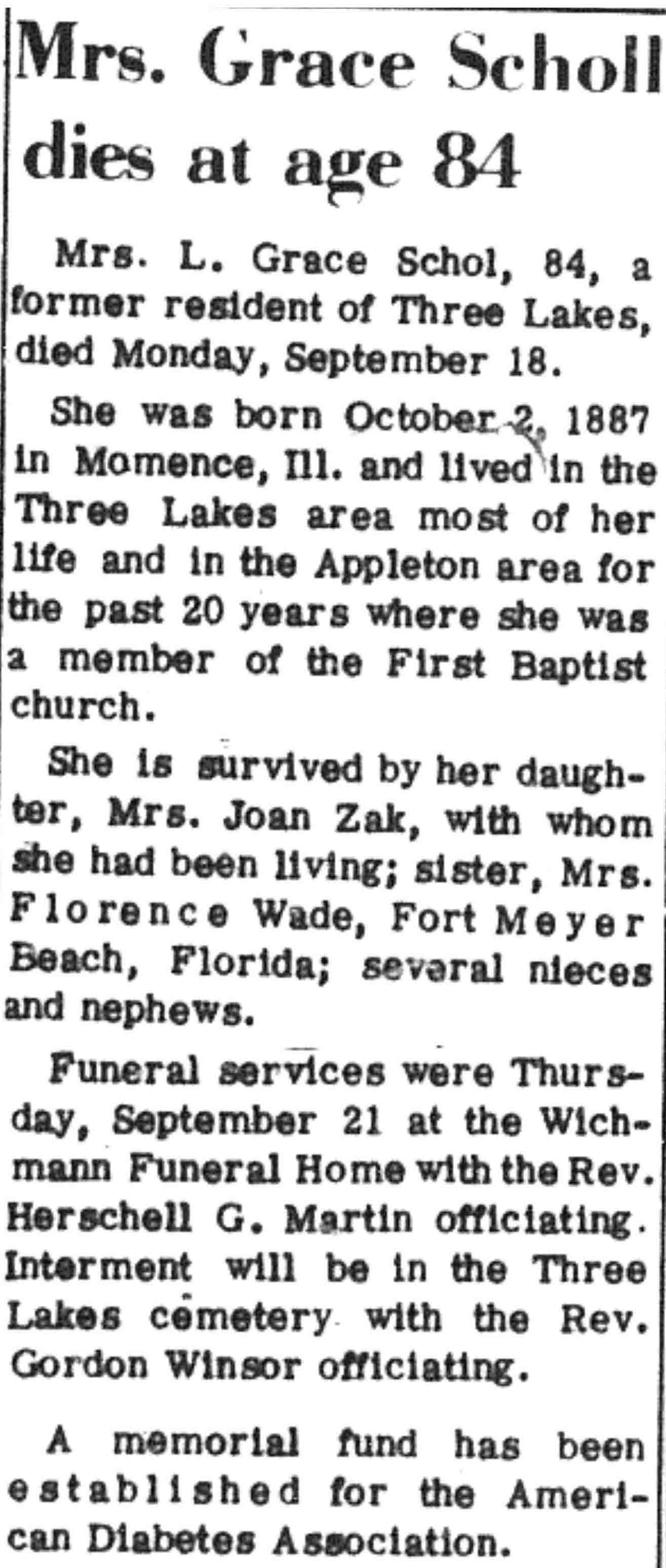 | Scholl | L Grace | 02 Oct 1877 | 18 Sep 1972 | VCN | 28 Sep 1972 | 23 |