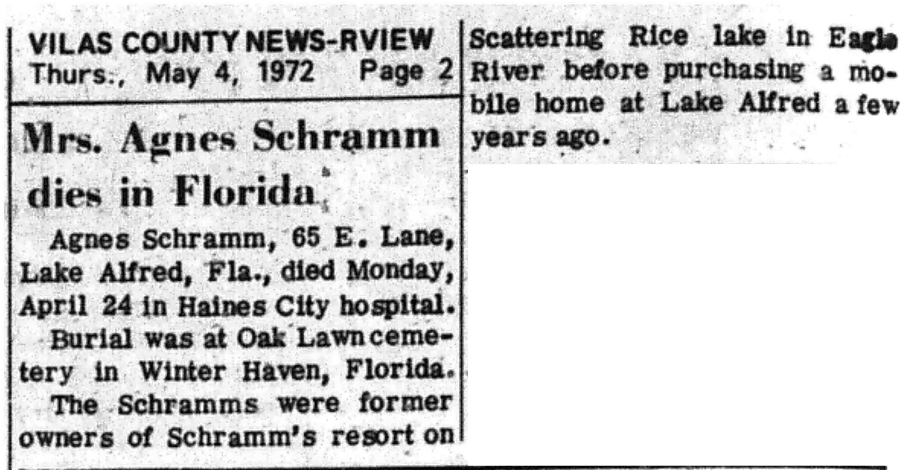 | Schramm | Agnes | c 1907 | 24 Apr 1972 | VCN | 04 May 1972 | 2 |