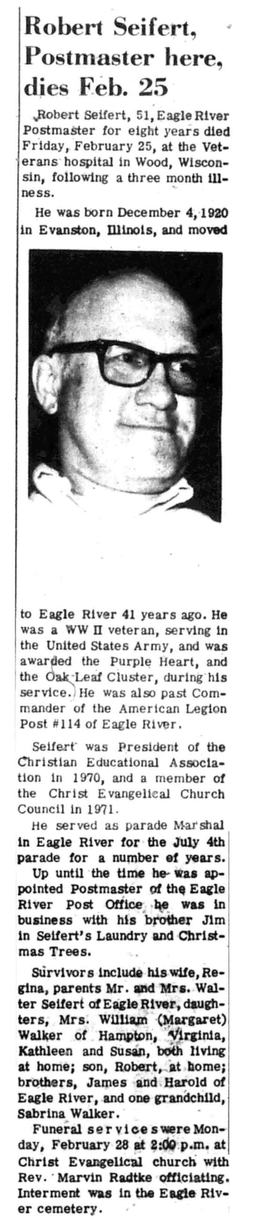 | Seifert | Robert | 04 Dec 1920 | 25 Feb 1972 | VCN | 02 Mar 1972 | 1 |