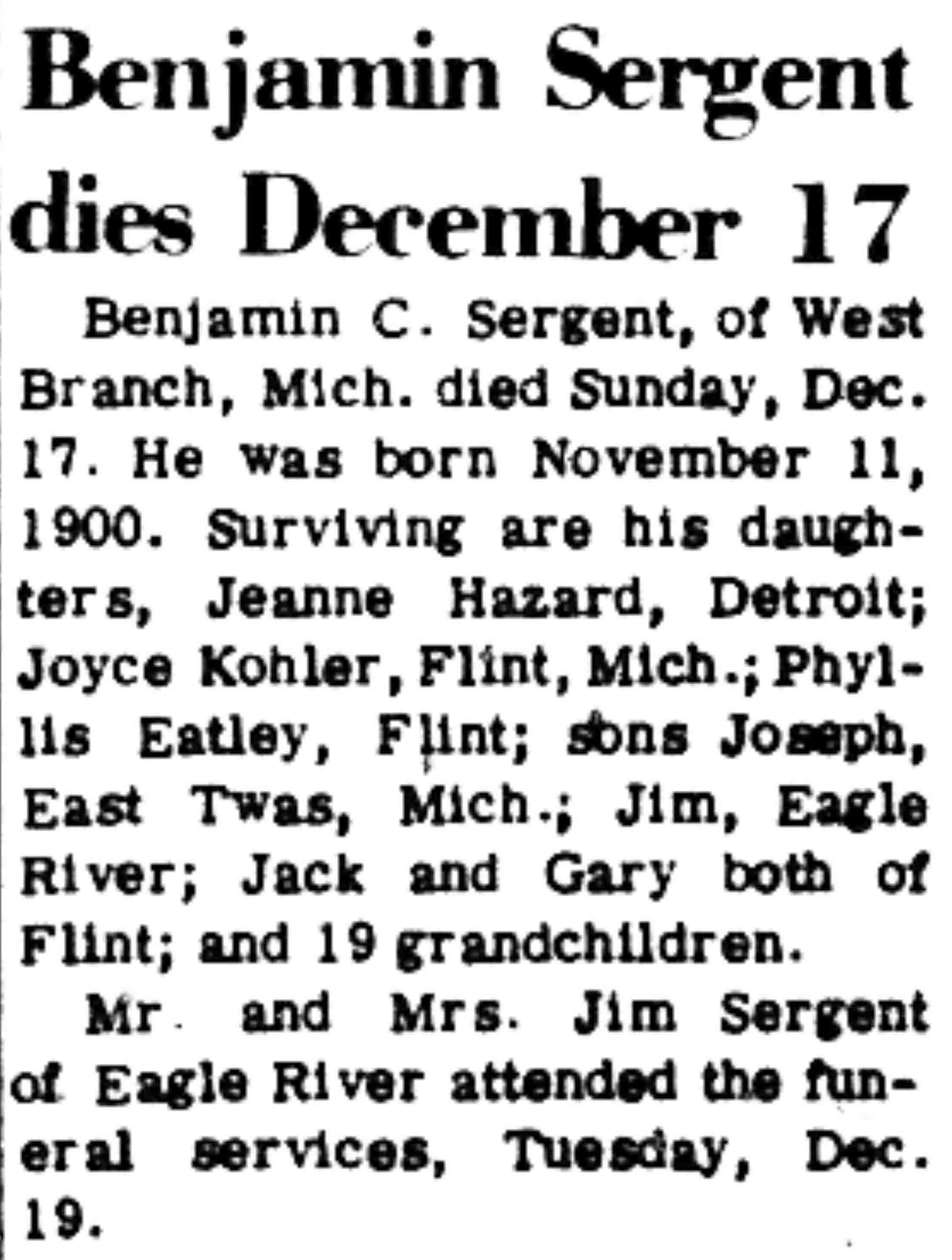| Sergent | Benjamin C | 11 Nov 1900 | 17 Dec 1972 | VCN | 21 Dec 1972 | 3 |