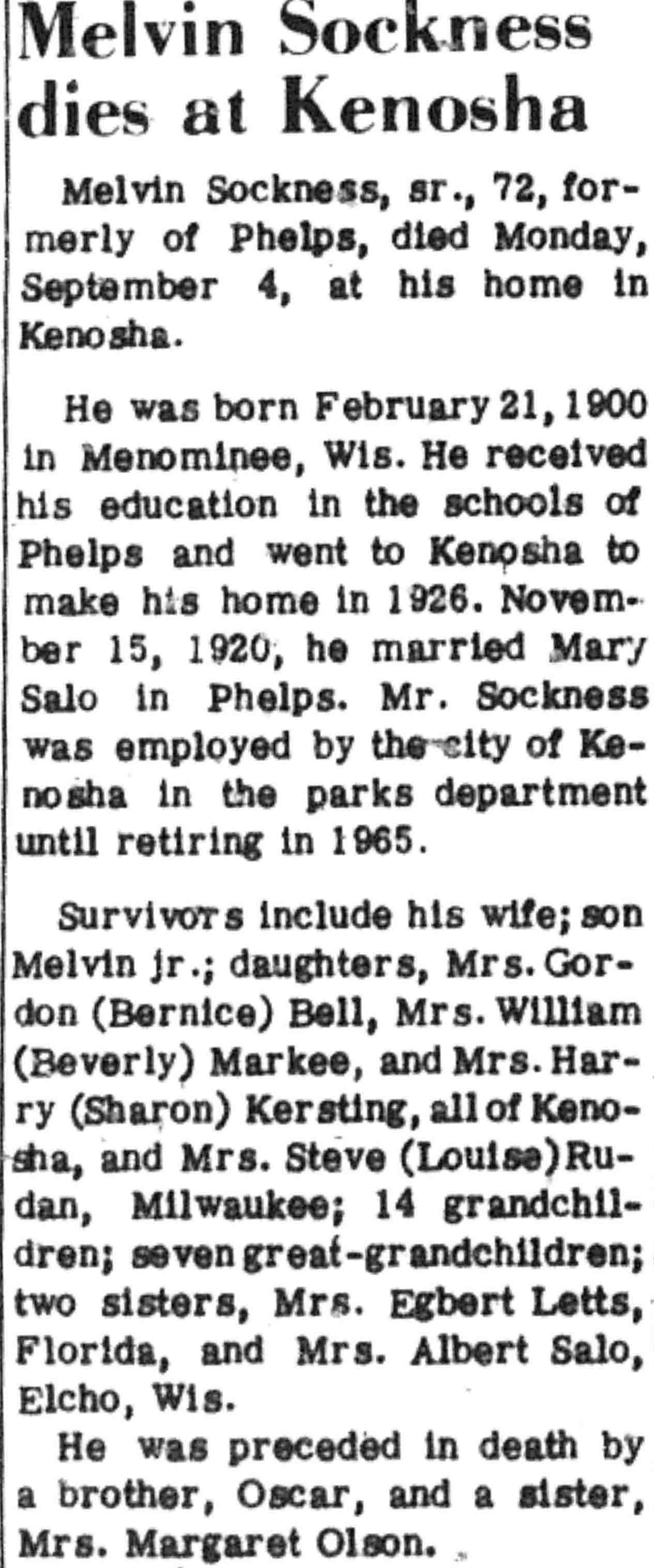 | Sockness | Melvin, Sr | 21 Feb 1900 | 04 Sep 1972 | VCN | 14 Sep 1972 | 2 |
